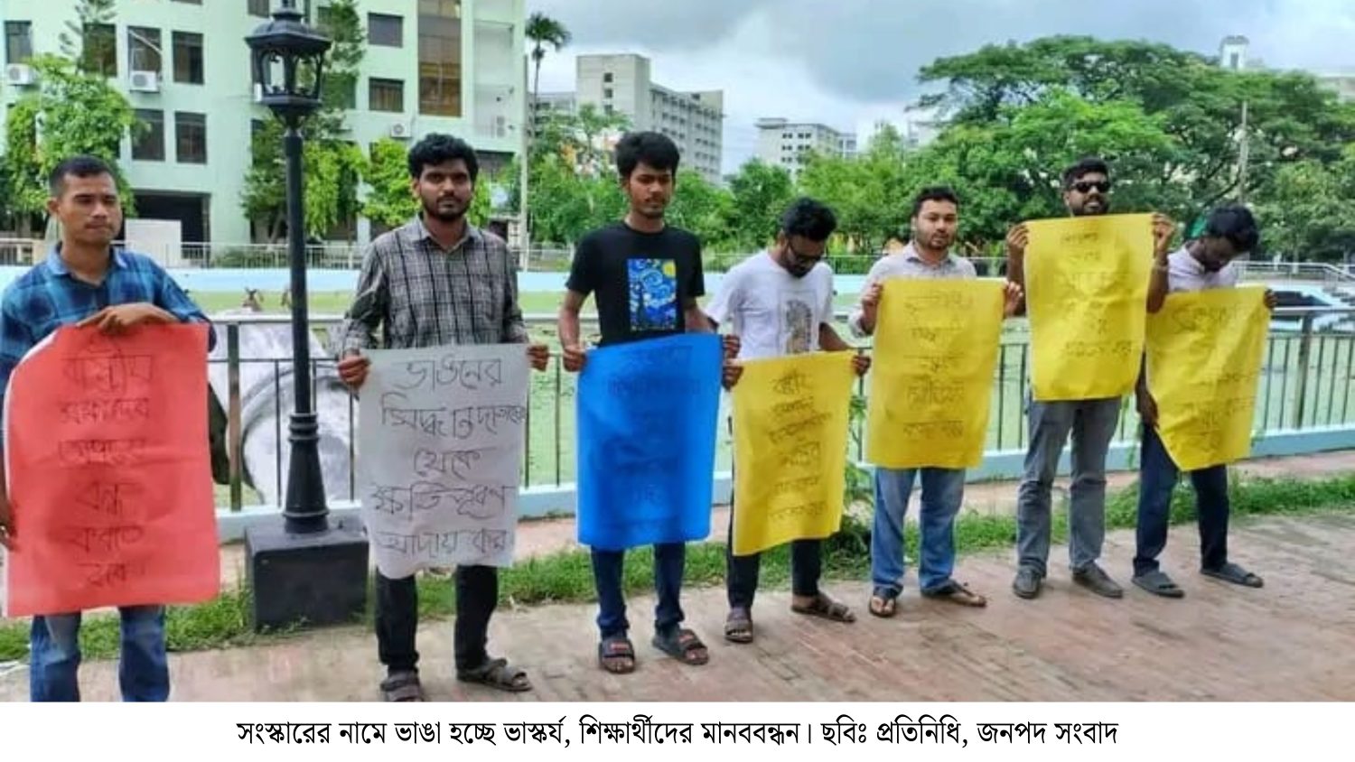 হৃদয় আহমেদ, জাককানইবি প্রতিনিধি: জাতীয় কবি কাজী নজরুল ইসলাম বিশ্ববিদ্যালয়ে সংস্কারের নাম করে ভেঙে ফেলা হচ্ছে ‘অঞ্জলি লহ মোর’ নামের