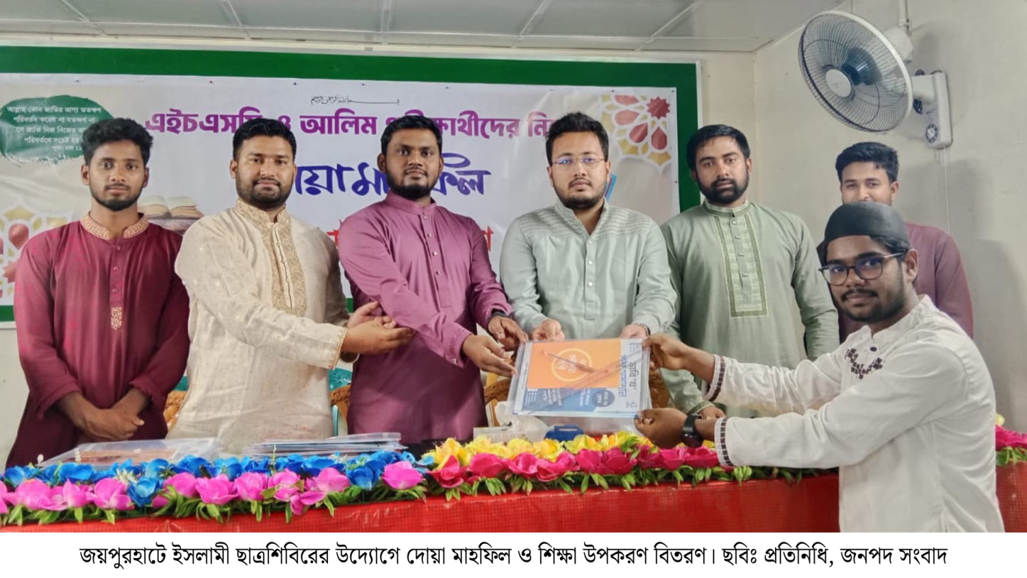 মোঃ আবু সুফিয়ান মুক্তার,জয়পুরহাট প্রতিনিধিঃ বাংলাদেশ ইসলামী ছাত্রশিবির জয়পুরহাট জেলা শাখার উদ্যোগে এইচএসসি ও আলিম পরীক্ষার্থীদের নিয়ে এক মনোজ্ঞ দোয়া