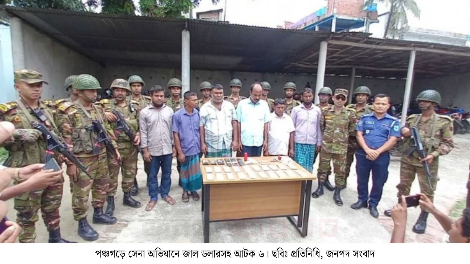 পঞ্চগড় প্রতিনিধিঃ পঞ্চগড়ে সেনাবাহিনীর বিশেষ অভিযানে ৮০ হাজার জাল ইউএস ডলারসহ ৬ সদস্যকে আটক করেছে পঞ্চগড় আর্মি ক্যাম্পের সদস্যরা।