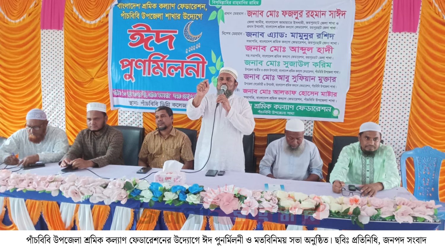 মোঃ আবু সুফিয়ান মুক্তার, জয়পুরহাট প্রতিনিধিঃ জয়পুরহাটের পাঁচবিবি উপজেলা শ্রমিক কল্যাণ ফেডারেশনের উদ্যোগে এক প্রাণবন্ত ঈদ পুনর্মিলনী ও মতবিনিময় সভা