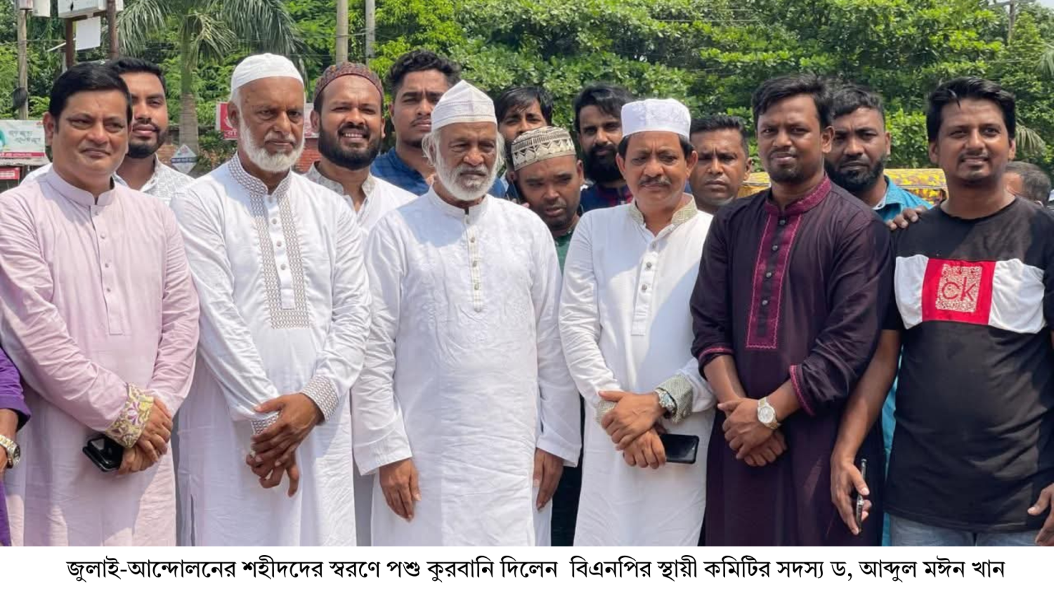 মাজহারুল ইসলাম ইমন, নরসিংদী প্রতিনিধিঃ জুলাই-আগস্টে নিহত সকল শহীদদের স্বরণে পশু কোরবানি দিলেন বিএনপির স্থায়ী কমিটির সদস্য ও সাবেক