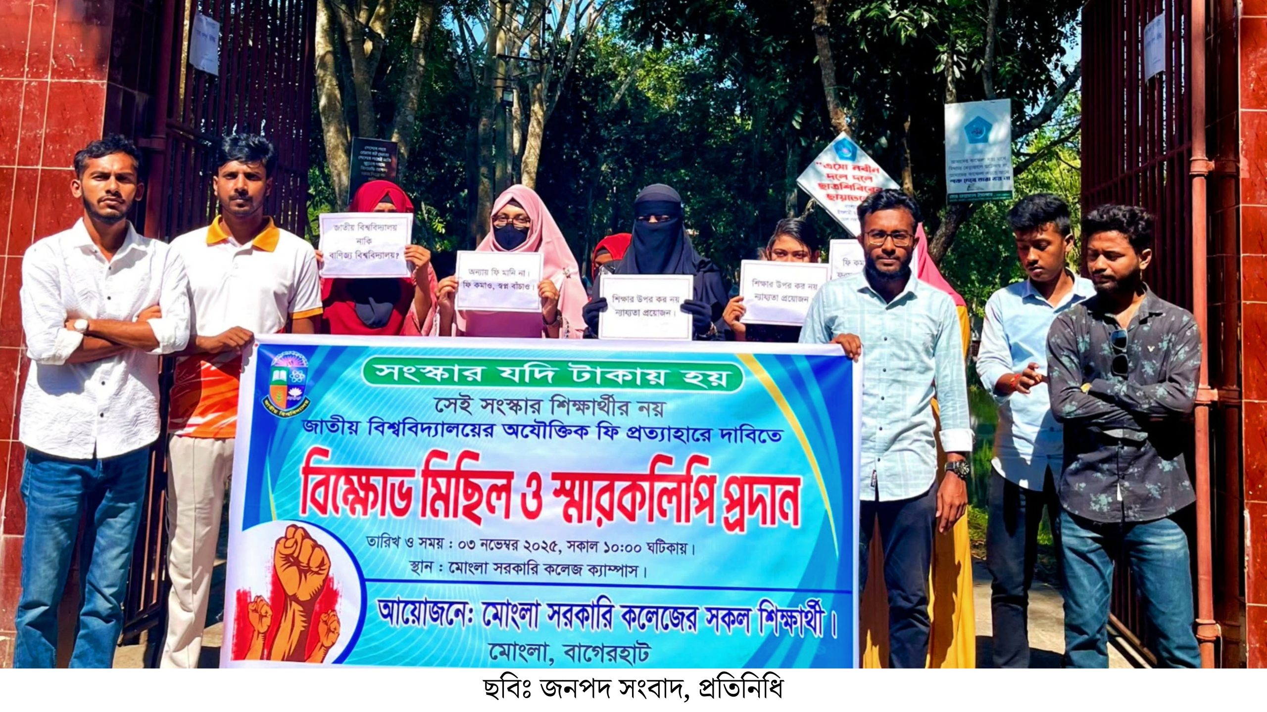 মোঃ মহিম ইসলাম, বাগেরহাট প্রতিনিধি: জাতীয় বিশ্ববিদ্যালয়ের (National University – NU) বিভিন্ন পরীক্ষার অযৌক্তিক ফি বৃদ্ধির প্রতিবাদে এবং তা অবিলম্বে…