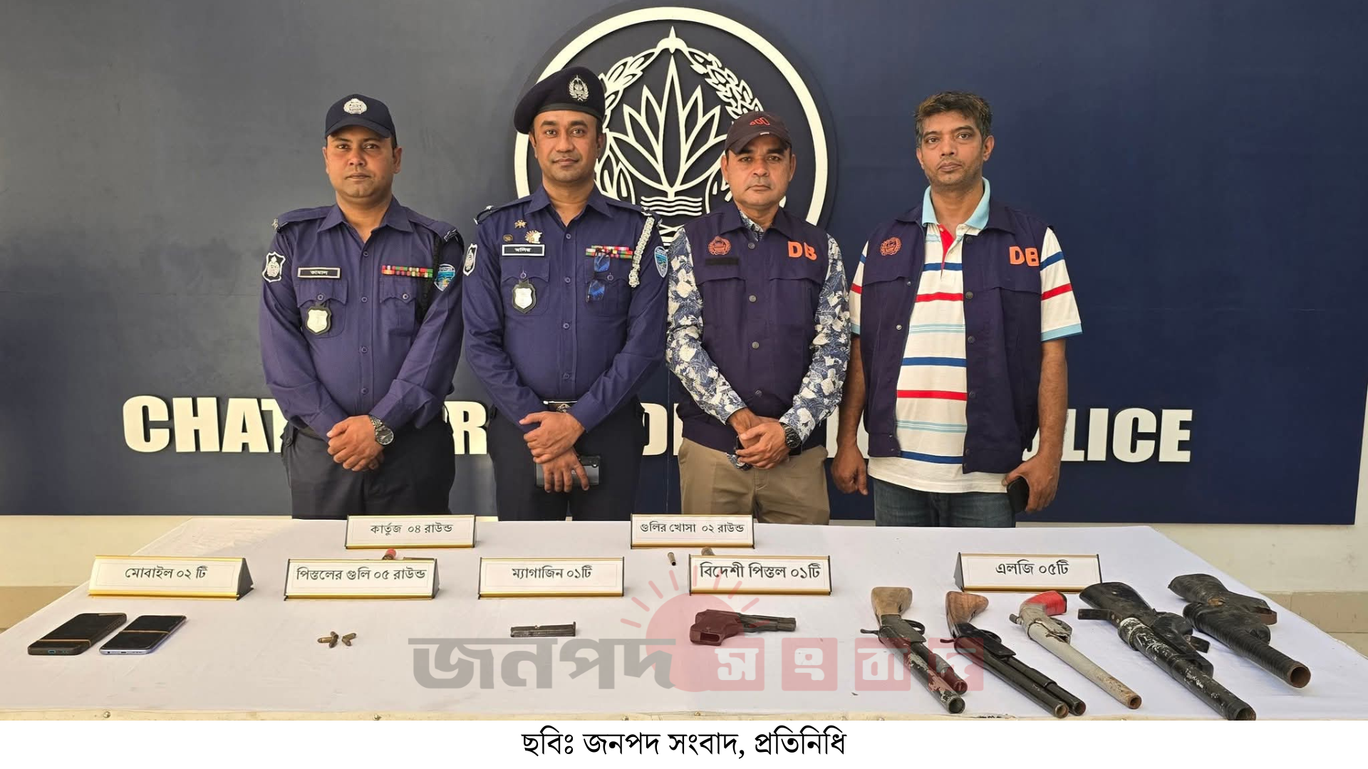 (১৬ নভেম্বর ২০২৫) দক্ষিণ রাঙ্গুনিয়া থানাধীন পদুয়া ইউনিয়নের মৌলভীখীল তিন রাস্তার মোড়ে জেলা গোয়েন্দা শাখা ও দক্ষিণ রাঙ্গুনিয়া থানা চেকপোস্ট স্থাপন করে হুমায়ুন উদ্দিন আকাশ প্র: লেদাইয়া–কে গ্রেফতার করে। পরবর্তীতে তার স্বীকারোক্তি ও দেখানো মতে, রাউজান থানাধীন মকবুল আহমেদ সওদাগরের বাড়ির জনৈক মাহবুবুল আলমের টিনের ঘরের পশ্চিম পাশের ঝোপের ভিতর থেকে ১টি এলজি ও ২ রাউন্ড কার্তুজ উদ্ধার করা হয়।