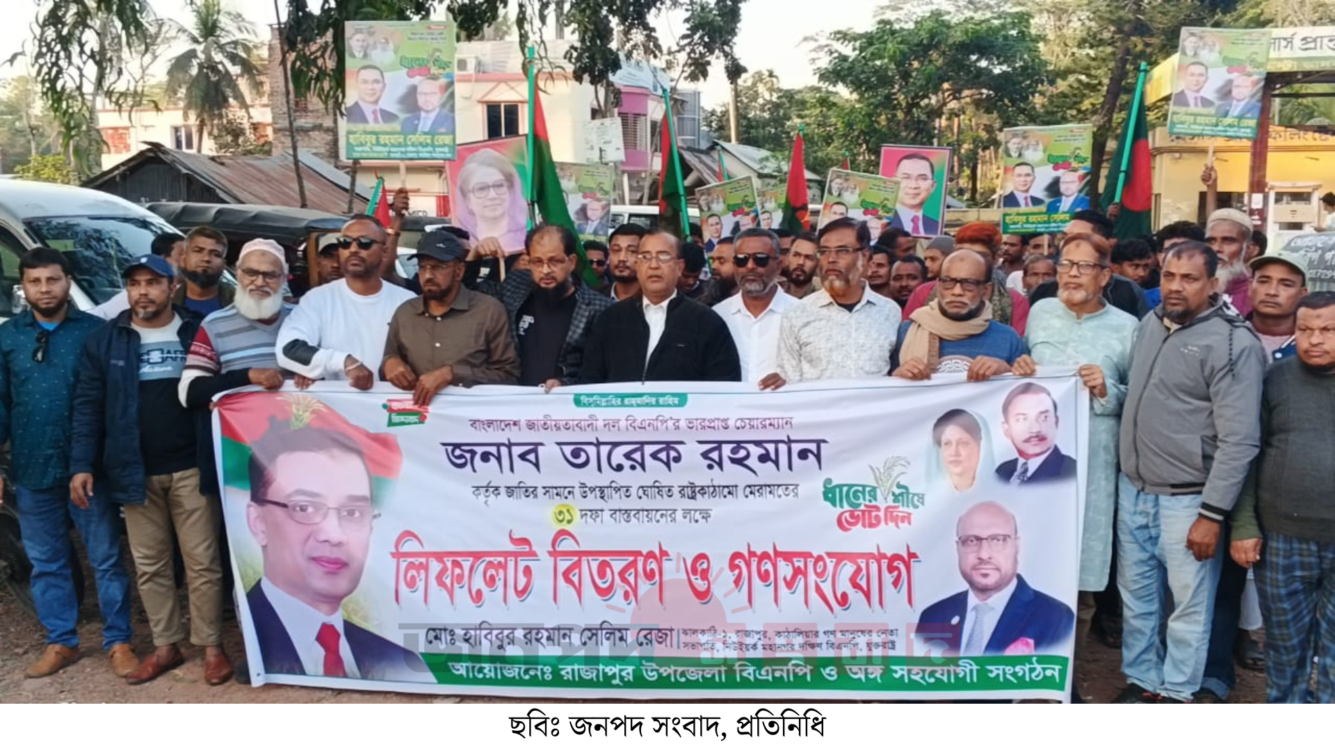 রাজাপুরে বিএনপির মনোনয়ন প্রত্যাশী সেলিম রেজার পক্ষে গণসংযোগ, লিফলেট বিতরণ ও পথসভা অনুষ্ঠিত