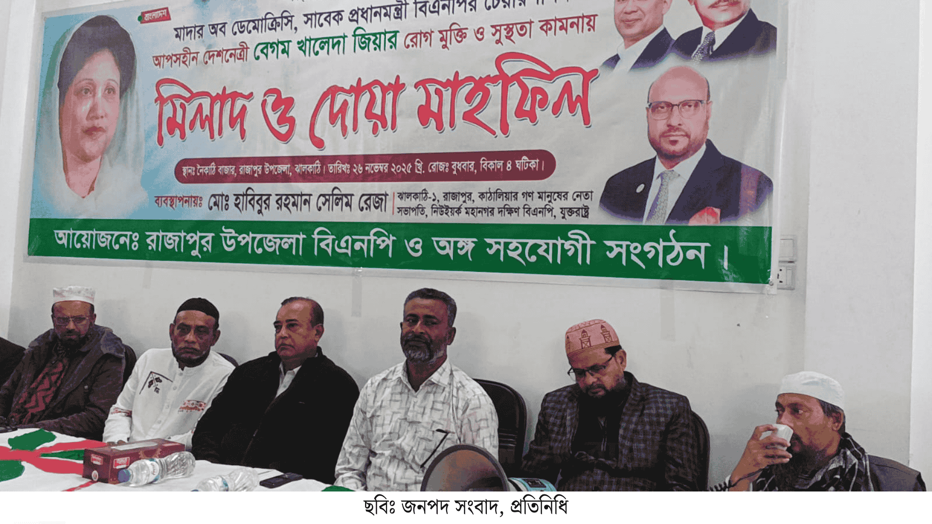 রাজাপুরে খালেদা জিয়ার রোগমুক্তি ও সুস্থতা কামনায় মিলাদ ও দোয়া মাহফিল অনুষ্ঠিত
