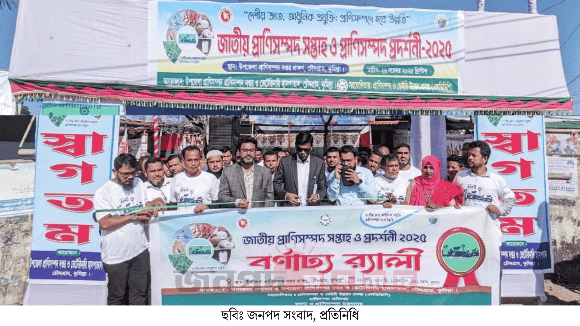 দেশীয় জাত আধুনিক প্রযুক্তি, প্রাণি সম্পদে হবে উন্নতি’-এ প্রতিপাদ্যকে সামনে রেখে কুমিল্লার চৌদ্দগ্রামে জাতীয় প্রাণিসম্পদ সপ্তাহ ও প্রদর্শনীর উদ্বোধন করেছেন উপজেলা নির্বাহী কর্মকর্তা মোঃ জামাল হোসেন।