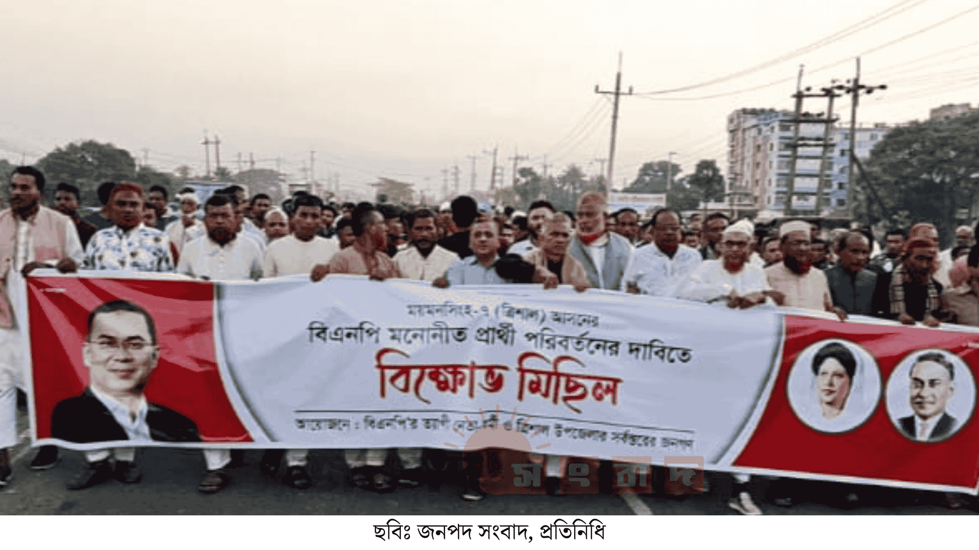 ত্রিশালে বিএনপির মনোনয়ন পরিবর্তনের দাবিতে বিক্ষোভ মিছিল