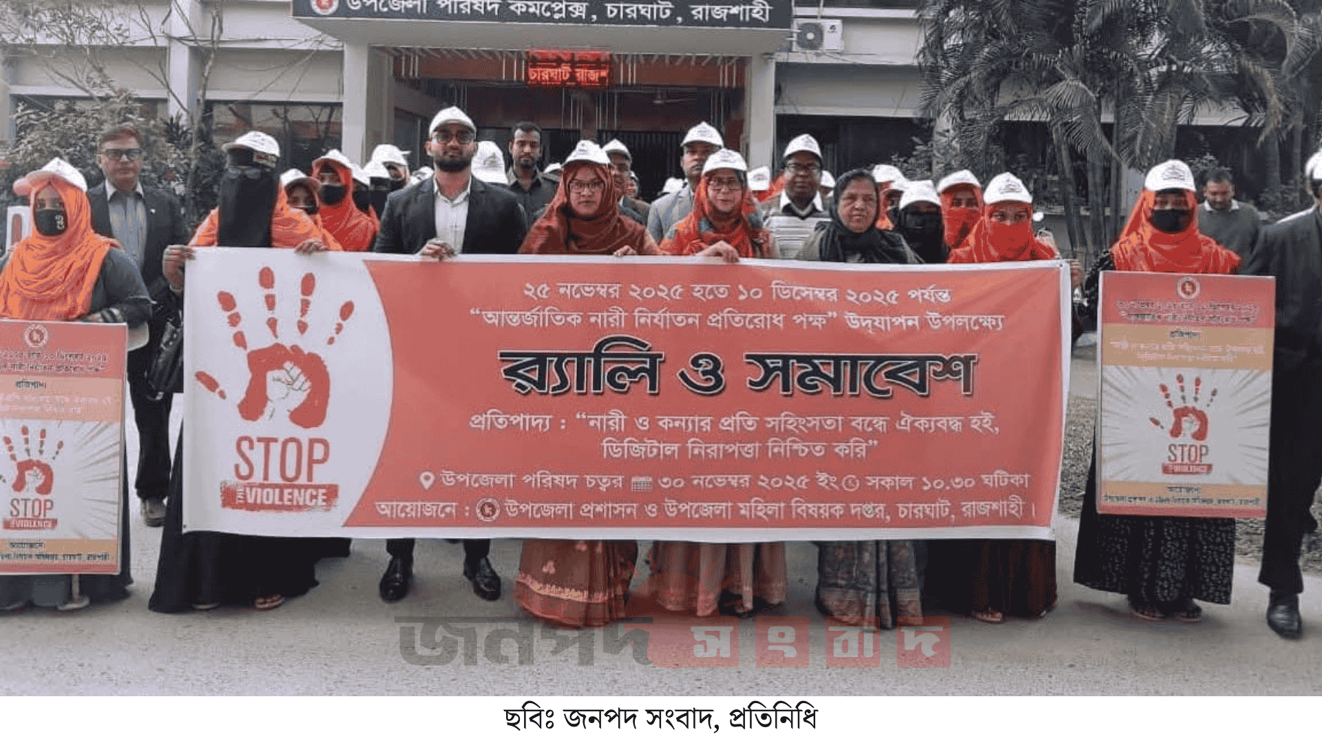 "নারী ও কন্যার প্রতি সহিংসতা বন্ধে ঐক্যবদ্ধ হই, ডিজিটাল নিরাপত্তা নিশ্চিত করি" এই প্রতিপাদ্যকে সামনে রেখে রাজশাহী চারঘাটে আন্তর্জাতিক নারী নির্যাতন প্রতিরোধ পক্ষ-২০২৫ উদযাপন উপলক্ষ্যে র্যালি ও সমাবেশ অনুষ্ঠিত হয়েছে।