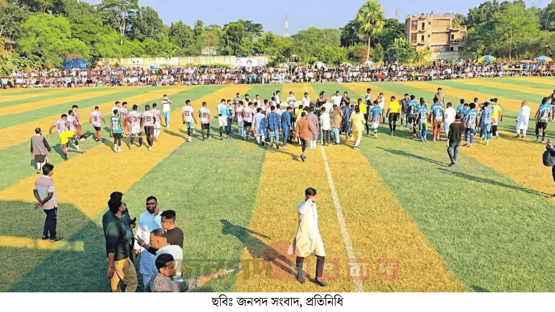 মাদারীপুরের শিবচরে আবারো প্রমাণ মিললো—বাংলাদেশের ফুটবলে সৃষ্টি হওয়া নতুন জাগরণ এখন শুধু জাতীয় দলেই সীমাবদ্ধ নেই, পৌঁছে গেছে গ্রামাঞ্চলের প্রতিটি মাঠে। জামাল ভূইয়া, হামজা চৌধুরী, জিকোদের হাত ধরে যে ফুটবলের জাগরণ শুরু হয়েছে, তার প্রভাব আজ অনুভূত হচ্ছে শহর থেকে প্রত্যন্ত গ্রামের মাঠেও। যে ফুটবল একসময় দর্শক সংকটে ভুগত, সেই ফুটবলের ম্যাচ দেখতে এখন মানুষের ঢল নামে—মাঠে দাঁড়ানোর জায়গা থাকে না।