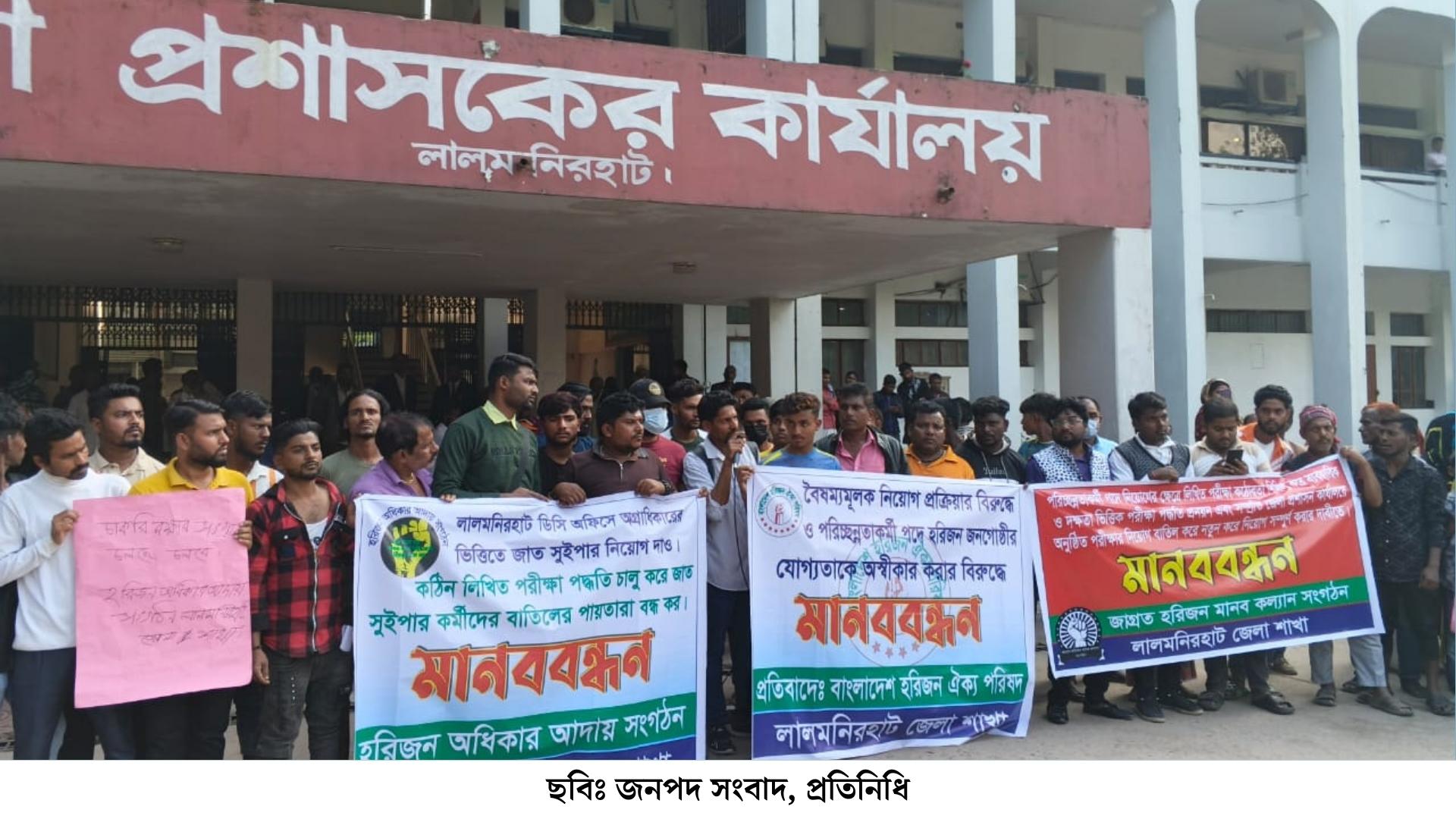 ডিসি অফিসের নিয়োগ বাতিলের দাবিতে লালমনিরহাটে হরিজন সম্প্রদায়ের মানববন্ধন