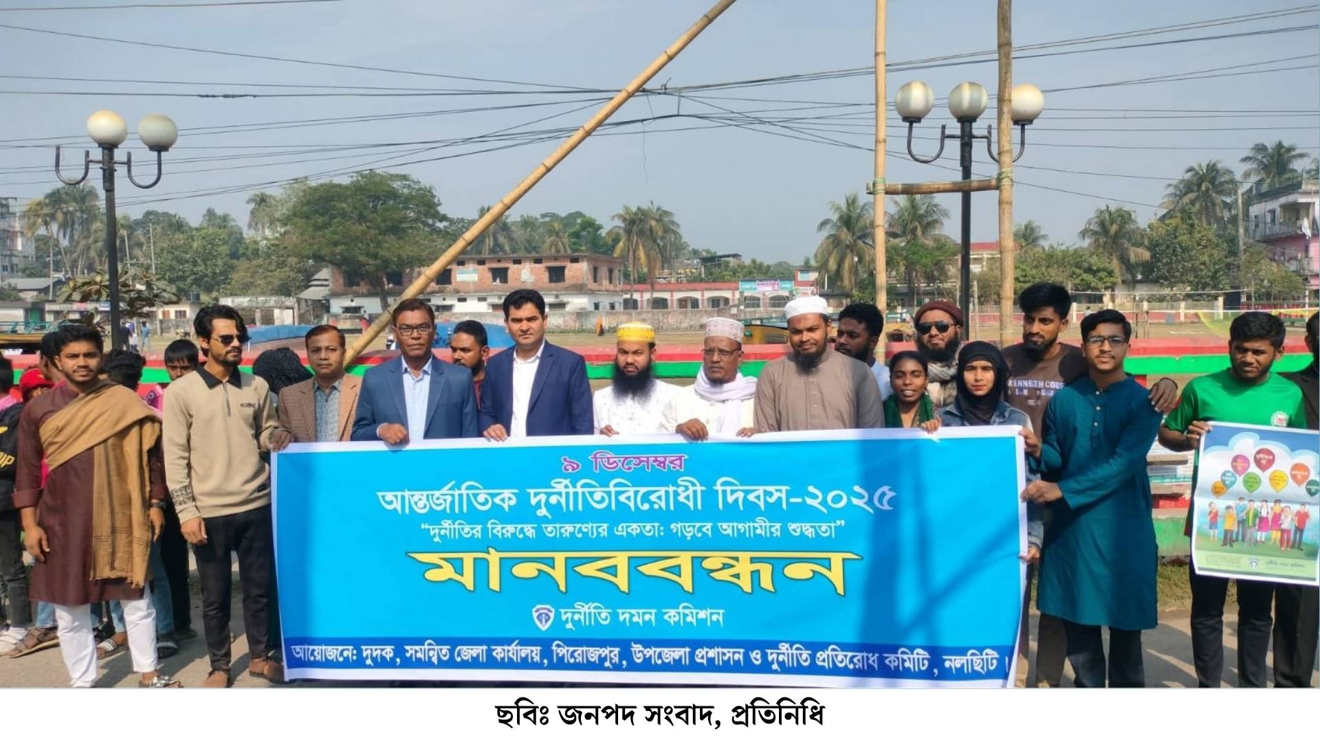 ঝালকাঠির নলছিটিতে মানববন্ধন ও আলোচনা সভার মাধ্যমে আন্তর্জাতিক দুর্নীতি বিরোধী দিবস ২০২৫ পালিত হয়েছে।