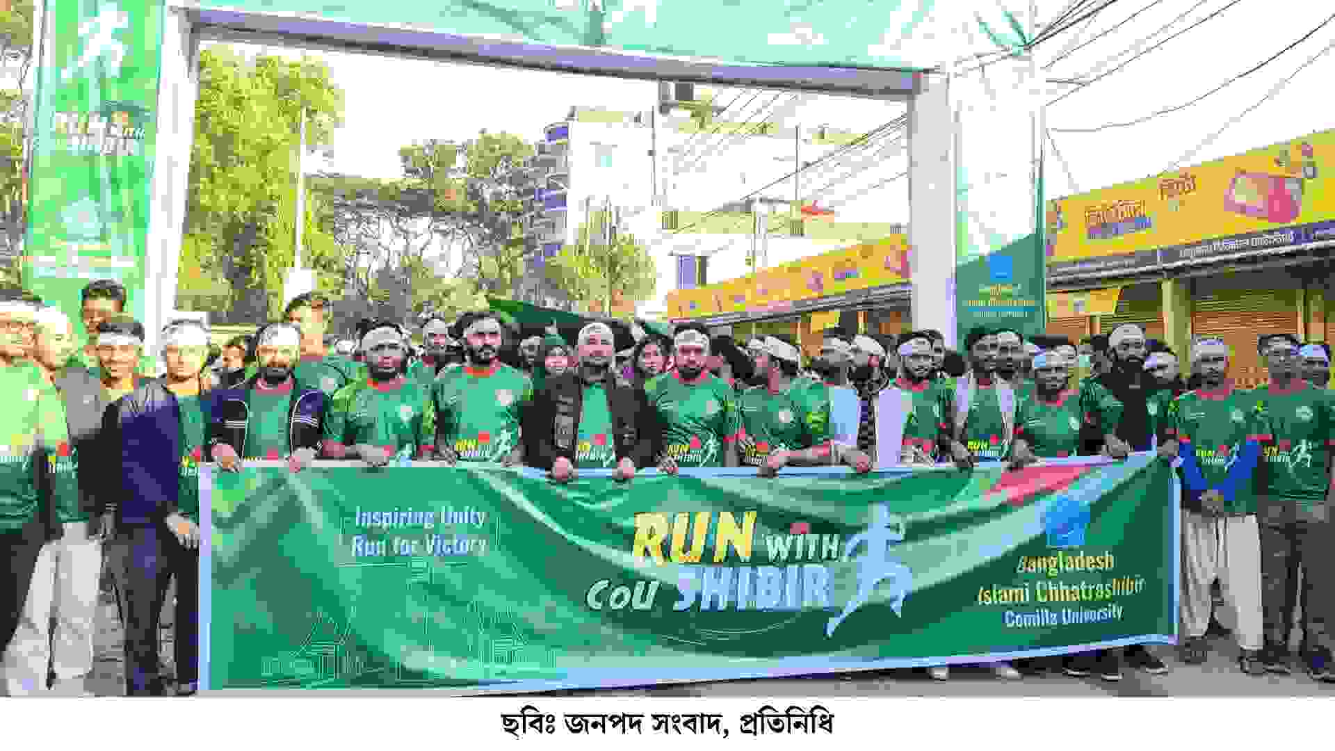 'ইন্সপায়ারিং ইউনিটি, রান ফর ভিক্টোরি' স্লোগানকে ধারণ করে ‘রান উইথ শিবির’ কর্মসূচির আয়োজন করেছে কুমিল্লা বিশ্ববিদ্যালয় শাখা ছাত্রশিবির।