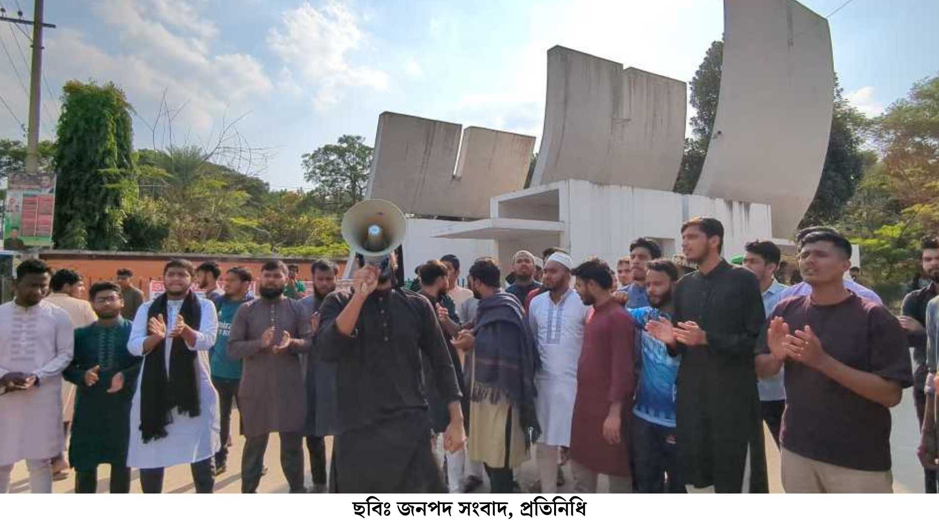 শুক্রবার (১৯ ডিসেম্বর) বাদ জুমা কেন্দ্রীয় মসজিদ প্রাঙ্গন থেকে মিছিলটি শুরু হয়ে বিশ্ববিদ্যালয়ের প্রধান ফটকে গিয়ে শেষ হয়।