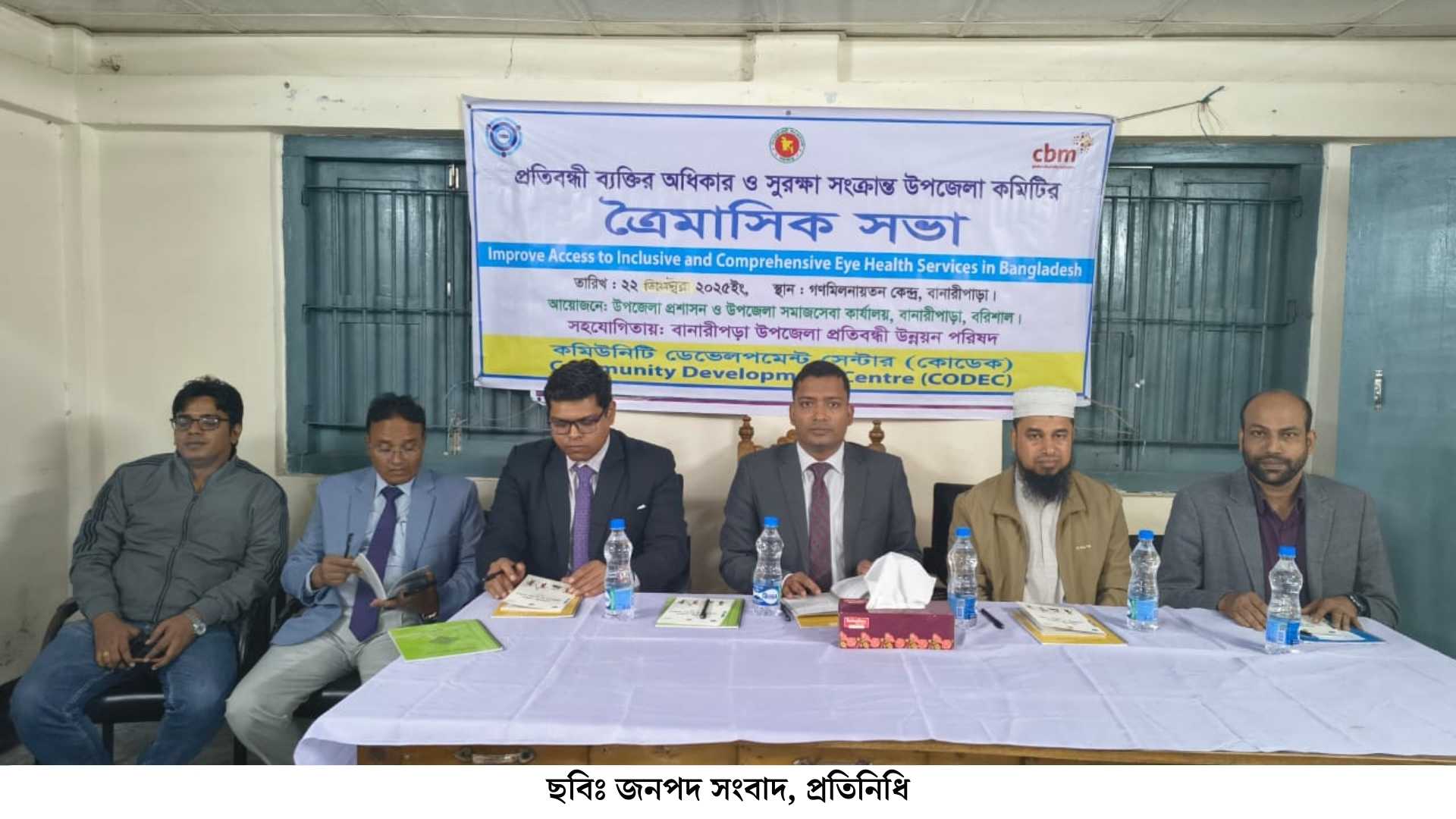 বরিশালের বানারীপাড়ায় প্রতিবন্ধী ব্যক্তির অধিকার ও সুরক্ষা কমিটির ত্রৈমাসিক সভা অনুষ্ঠিত হয়েছে।