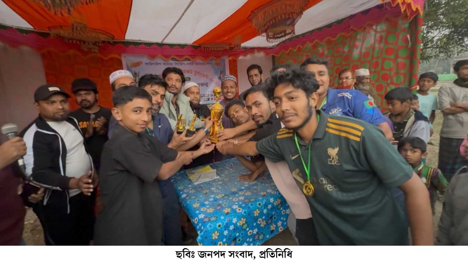 পুরস্কার বিতরের অনুষ্ঠানে দুলাল পাটোয়ারীর সভাপতিতে বিশেষ অতিথির বক্তব্য রাখেন নিউজিল্যান্ড প্রবাসী এনায়েত উল্লাহ, টুর্নামেন্টের পৃষ্ঠপোষক কাজী সাইফুল ইসলাম, শাহজাহান সাজু, কুয়েত প্রবাসী মাসুদ, ইটালি প্রবাসী মোহাম্মদ একরামুল হক,টুর্নামেন্টে সার্বিক পরিচালনায় ছিলেন মোহাম্মদ শিপন, সহিদ উল্লা,তৌহিদুল ইসলাম।