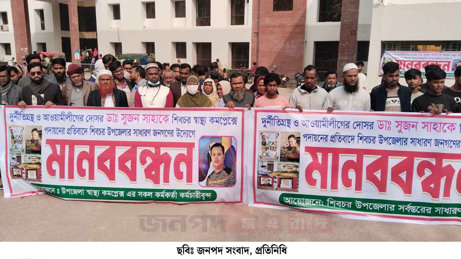 মাদারীপুরের শিবচর উপজেলা স্বাস্থ্য কমপ্লেক্সে বিতর্কিত ও দুর্নীতির অভিযোগে অভিযুক্ত এক চিকিৎসকের সম্ভাব্য পদায়নের বিরুদ্ধে ক্ষোভ প্রকাশ করে মানববন্ধন ও প্রতিবাদ কর্মসূচি পালন করেছেন হাসপাতালের কর্মকর্তা-কর্মচারী ও স্থানীয় সাধারণ মানুষ।