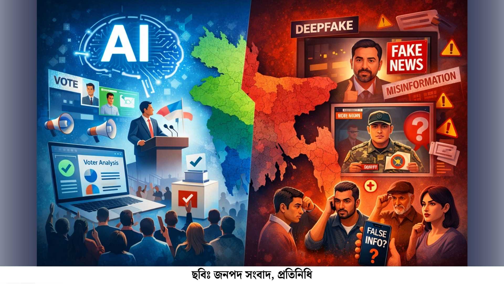 বাংলাদেশে সাধারণভাবে ডিজিটাল সাক্ষরতার হার তুলনামূলক কম হওয়ায় মানুষ এসব বানোয়াট কনটেন্টে সহজেই বিভ্রান্ত হচ্ছে। এর ফলে নির্বাচনের মতো গুরুত্বপূর্ণ প্রক্রিয়ায় ভুয়া তথ্য জনমত গঠনে প্রভাব ফেলতে পারে, যা গণতন্ত্রের জন্য বড় হুমকি।
