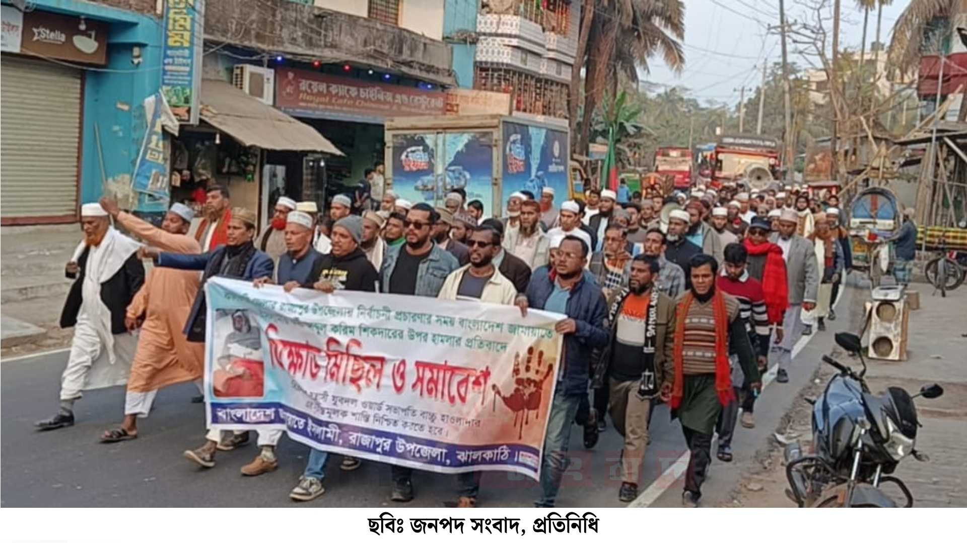 ঝালকাঠির রাজাপুরে নির্বাচনী প্রচারণা করায় জামায়াতে ইসলামীর কর্মী আব্দুল করিম শিকদারের ওপর হামলার প্রতিবাদে বিক্ষোভ মিছিল ও প্রতিবাদ সমাবেশ অনুষ্ঠিত হয়েছে।