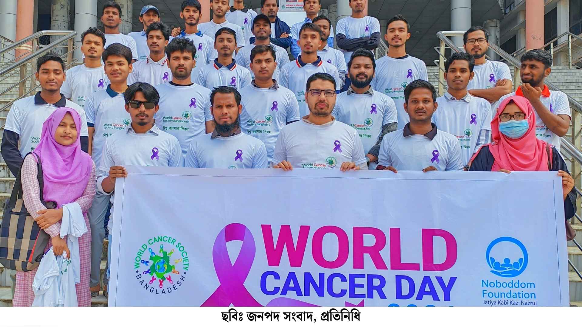বুধবার (৪ ফেব্রুয়ারি) সকালে ওয়ার্ল্ড ক্যান্সার সোসাইটি বাংলাদেশ ও 'নবোদ্যম ফাউন্ডেশন' নজরুল বিশ্ববিদ্যালয় শাখার যৌথ উদ্যোগে দিবসটি উপলক্ষে সচেতনতামূলক র্যালি ও আলোচনা সভার আয়োজন করা হয়।
