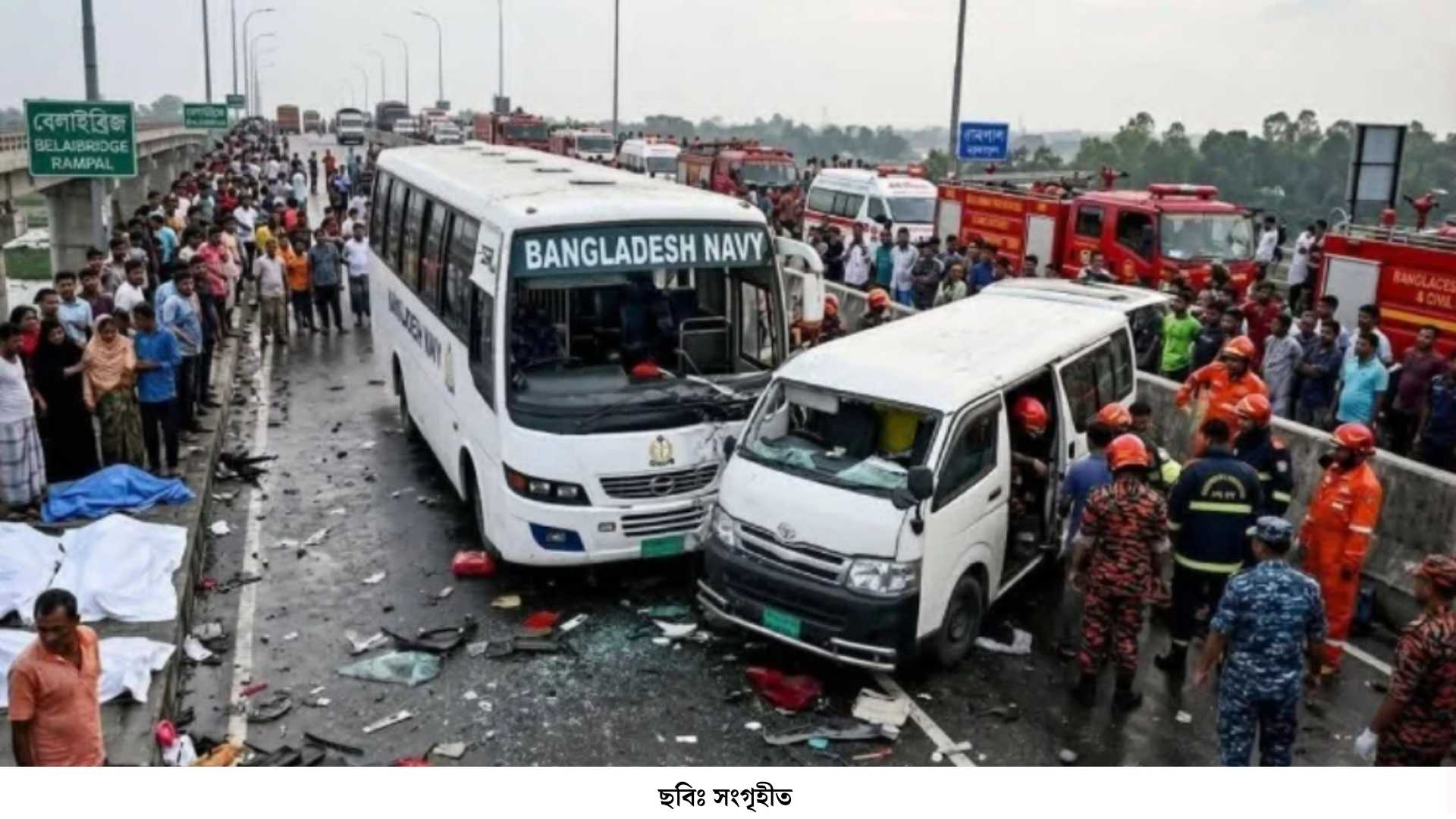 প্রসঙ্গত, বৃহস্পতিবার দুপুরে খুলনার কয়রা উপজেলার নকশা গ্রামে মার্জিয়া আক্তারের সঙ্গে মোংলা পৌরসভার ৮ নম্বর ওয়ার্ডের শেলাবুনিয়া এলাকার বাসিন্দা আব্দুর রাজ্জাকের ছেলে সাব্বিরের বিয়ে হয়। বিয়ের পর বরযাত্রীদের নিয়ে মাইক্রোবাসটি বিকেলে খুলনা-মোংলা মহাসড়কের বেলাই ব্রিজ এলাকায় পৌঁছালে নৌবাহিনীর একটি স্টাফ বাসের সঙ্গে মুখোমুখি সংঘর্ষ হয়। এতে ঘটনাস্থলেই বহু হতাহতের ঘটনা ঘটে।