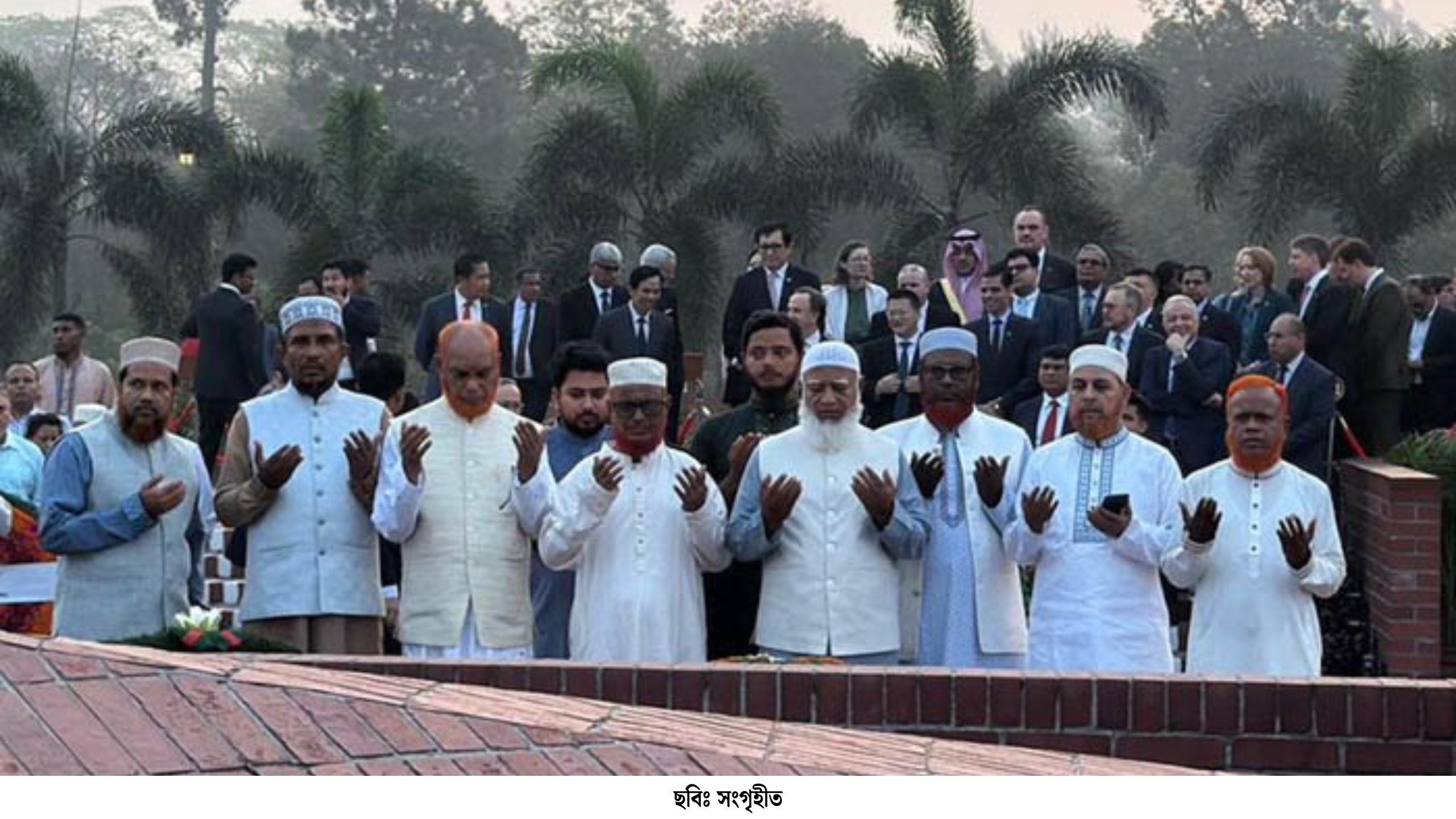 শ্রদ্ধা নিবেদন শেষে বীর শহিদদের আত্মার মাগফেরাত কামনা করে দোয়া ও মোনাজাত করেন তাঁরা।