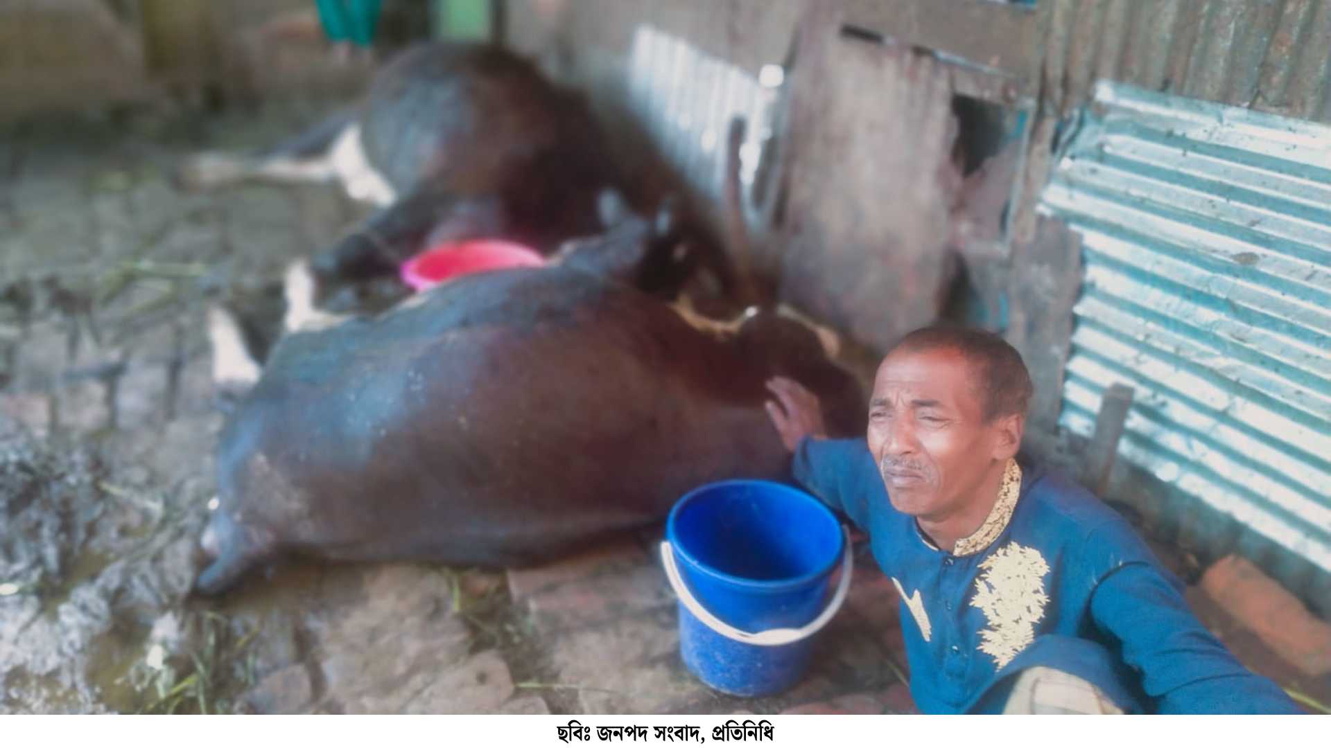 মঙ্গলবার (৭ এপ্রিল) রাতে ঝড়ের সময় খোলা বৈদ্যুতিক তারটি টিনের বেড়ার ওপর পড়ে পুরো গোয়ালঘর বিদ্যুতায়িত হয়ে যায়। বুধবার ভোর ৬টার দিকে গরুর অস্বাভাবিক ডাক শুনে বাচ্চু বেপারী গোয়ালঘরে ছুটে গিয়ে দেখেন, দুটি গাভী মেঝেতে ছটফট করছে।