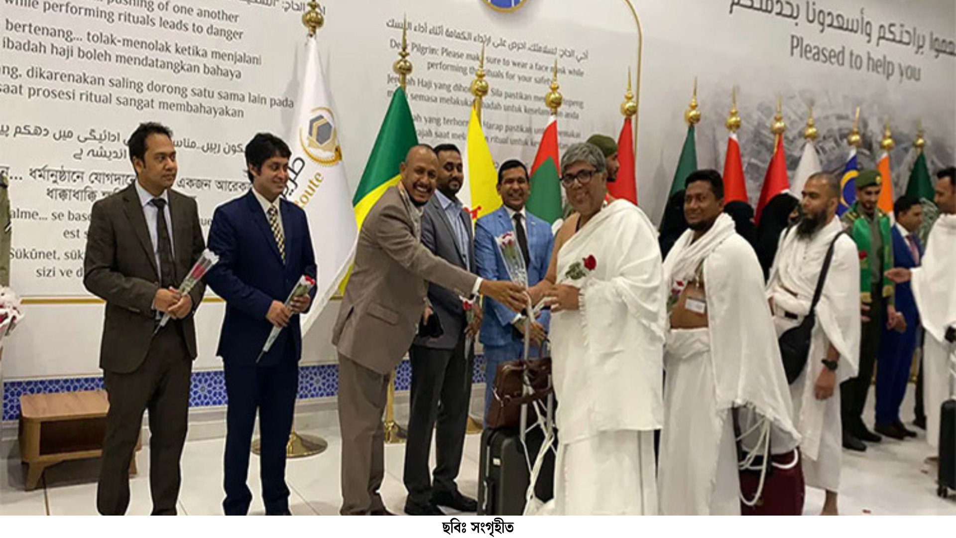 এসময় হজযাত্রীদের ফুল দিয়ে শুভেচ্ছা জানানো হয় এবং তাদের হাতে রিফ্রেশমেন্ট কিট তুলে দেওয়া হয়।