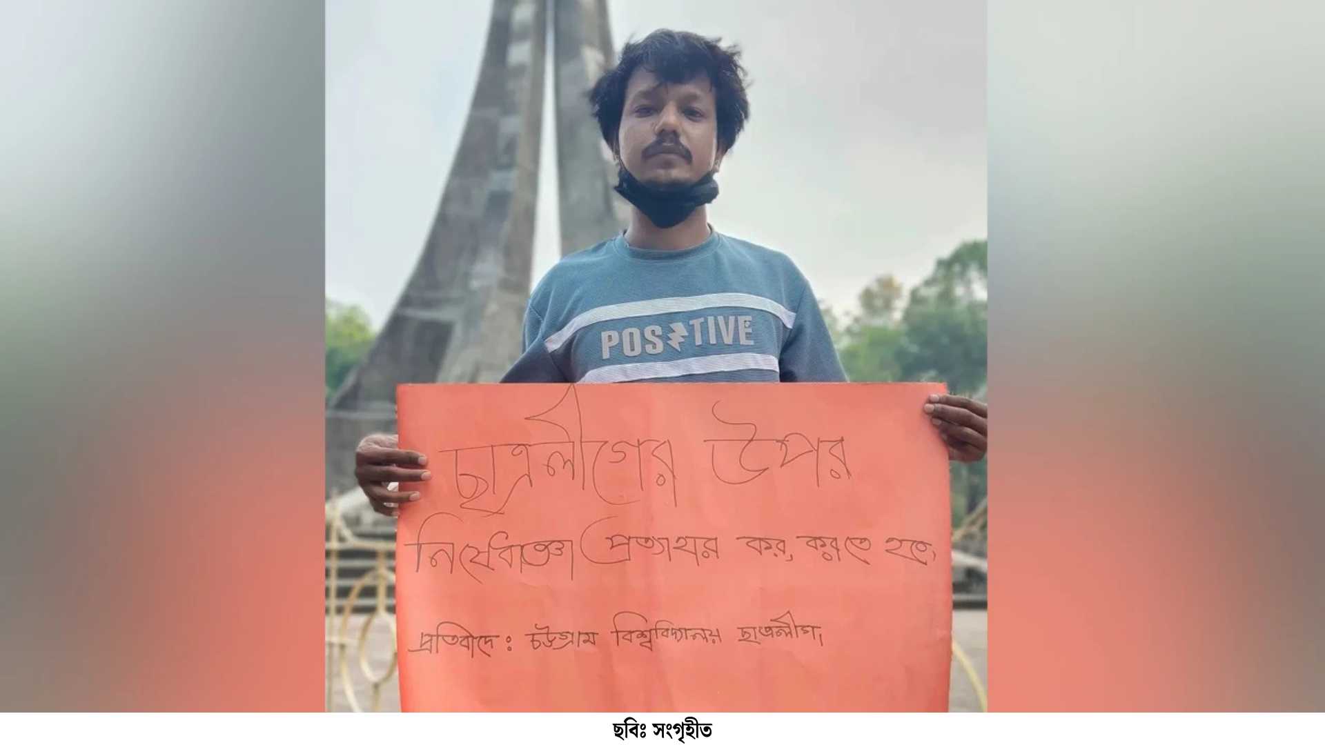 চট্টগ্রাম বিশ্ববিদ্যালয় (চবি) ক্যাম্পাসে নিষিদ্ধ ঘোষিত ছাত্রলীগের নিষেধাজ্ঞা প্রত্যাহারের দাবিতে এককভাবে প্ল্যাকার্ড হাতে অবস্থান নিয়েছেন সংগঠনটির চবি শাখার সাবেক সহ-সম্পাদক ওয়াহিদুল আলম।