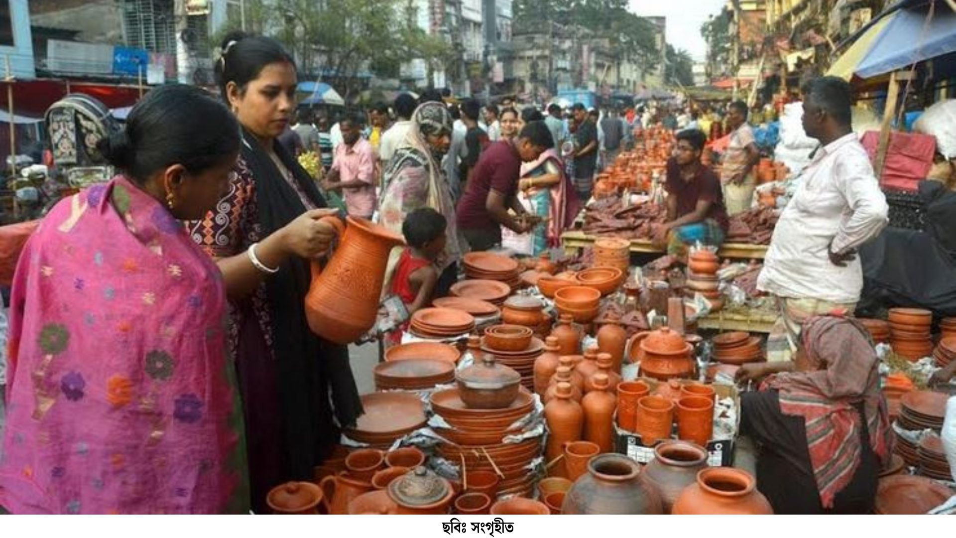 খুলনা থেকে মাটির জিনিসপত্র বিক্রি করতে আসা মিহির সরকার দোকান সাজিয়েছেন কে সি দে রোডের সিনেমা প্যালেসের পাশে। তিনি জানান, খুলনা থেকে মালামাল নিয়ে এসেছেন তিন দিন আগে। তিনি এবার ফুলদানি এবং শোপিস নিয়ে এসেছেন।