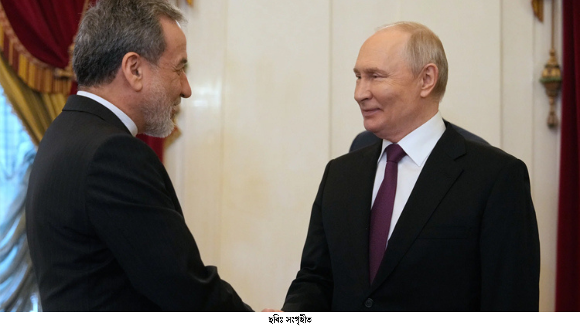 সেন্ট পিটার্সবার্গে অনুষ্ঠিত বৈঠকে রাশিয়ার রাষ্ট্রীয় গণমাধ্যমের বরাতে পুতিন ইরানের পররাষ্ট্রমন্ত্রী আব্বাস আরাকচিকে বলেন, ‘আমাদের পক্ষ থেকে আমরা এমন সবকিছু করব, যা আপনাদের স্বার্থ এবং এই অঞ্চলের সব মানুষের স্বার্থ রক্ষা করে, যাতে যত দ্রুত সম্ভব শান্তি প্রতিষ্ঠা করা যায়।’