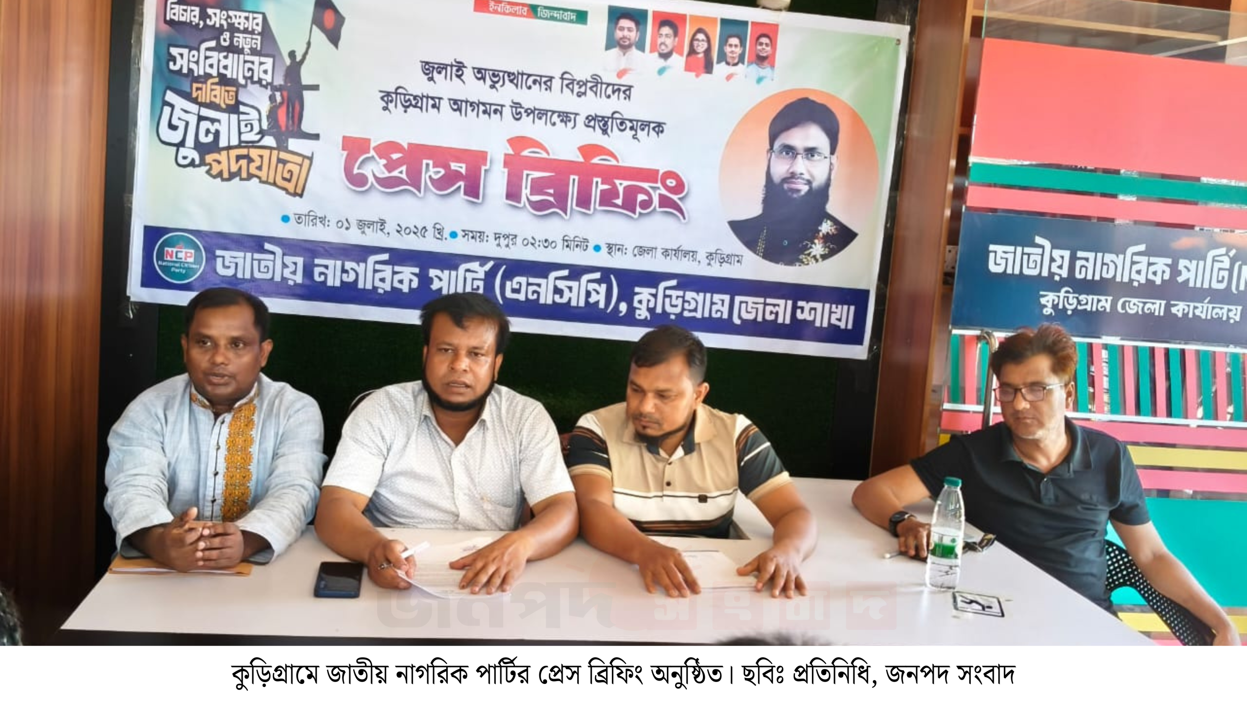 জাতীয় নাগরিক পার্টির (এনসিপি) কেন্দ্রীয় কর্মসূচির অংশ হিসেবে কুড়িগ্রাম সফর উপলক্ষে আজ মঙ্গলবার (১ জুলাই) জেলা কার্যালয়ে এক প্রস্তুতিমূলক প্রেস ব্রিফিং অনুষ্ঠিত হয়েছে। প্রেস ব্রিফিংয়ে জুলাই আন্দোলনের শহীদ বীর যোদ্ধা আবু সাঈদ, মুগ্ধসহ সকল শহীদের আত্মত্যাগের প্রতি বিনম্র শ্রদ্ধা জানানো হয়। পাশাপাশি আহত যোদ্ধাদের প্রতি গভীর সম্মান প্রকাশ করে তাদের সুস্থতা কামনা করা হয়।