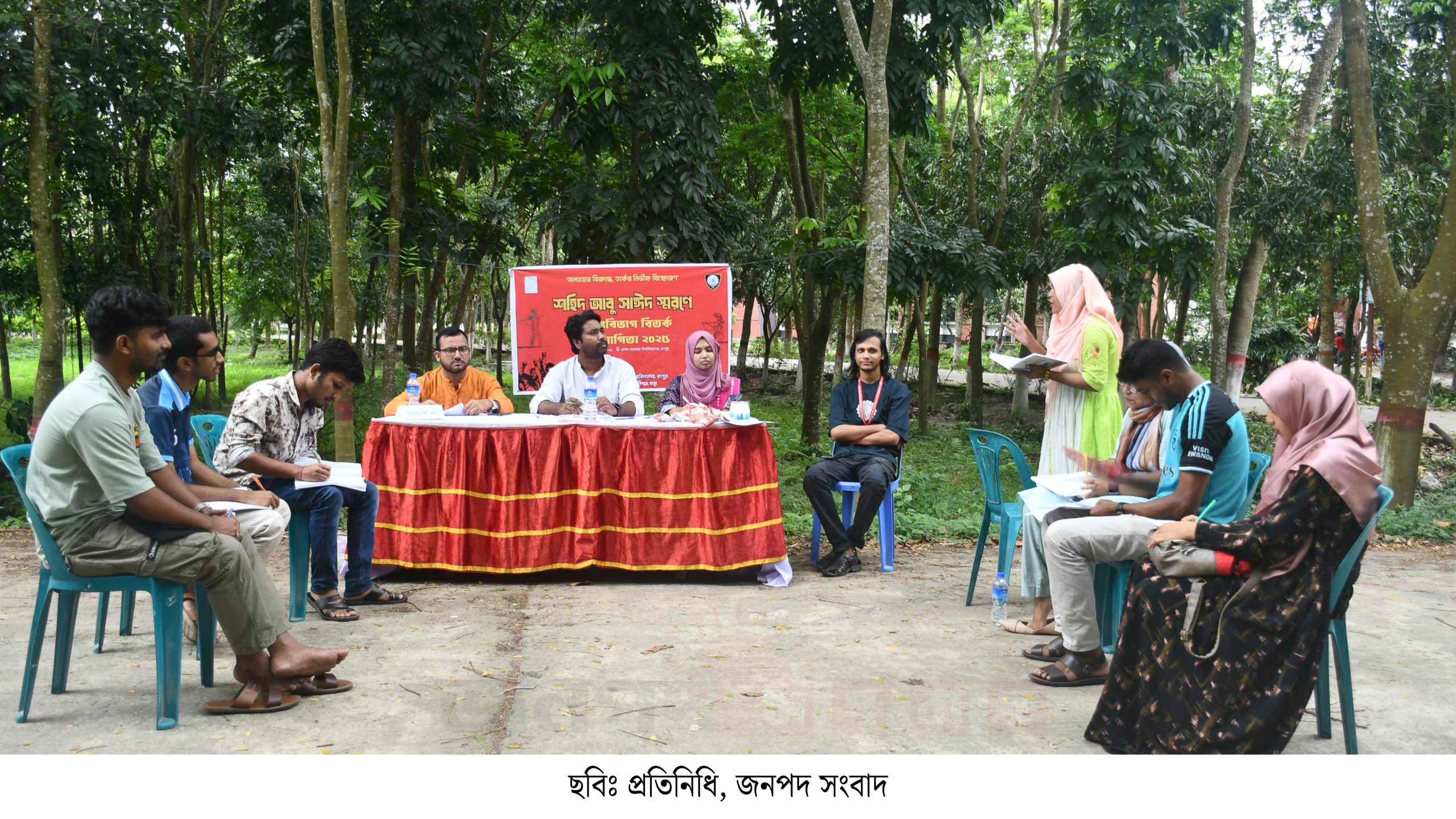 শহিদ আবু সাঈদ স্মরণে আন্তঃবিভাগ বিতর্ক প্রতিযোগিতার আহ্বায়ক ছাত্র পরামর্শ ও নির্দেশনা দপ্তরের পরিচালক প্রফেসর ড. মোঃ ইলিয়াছ প্রামানিকের সভাপতিত্বে অনুষ্ঠানে প্রধান অতিথি হিসেবে উপস্থিত ছিলেন রংপুর জেলার প্রশাসক মোহাম্মদ রবিউল ফয়সাল।
