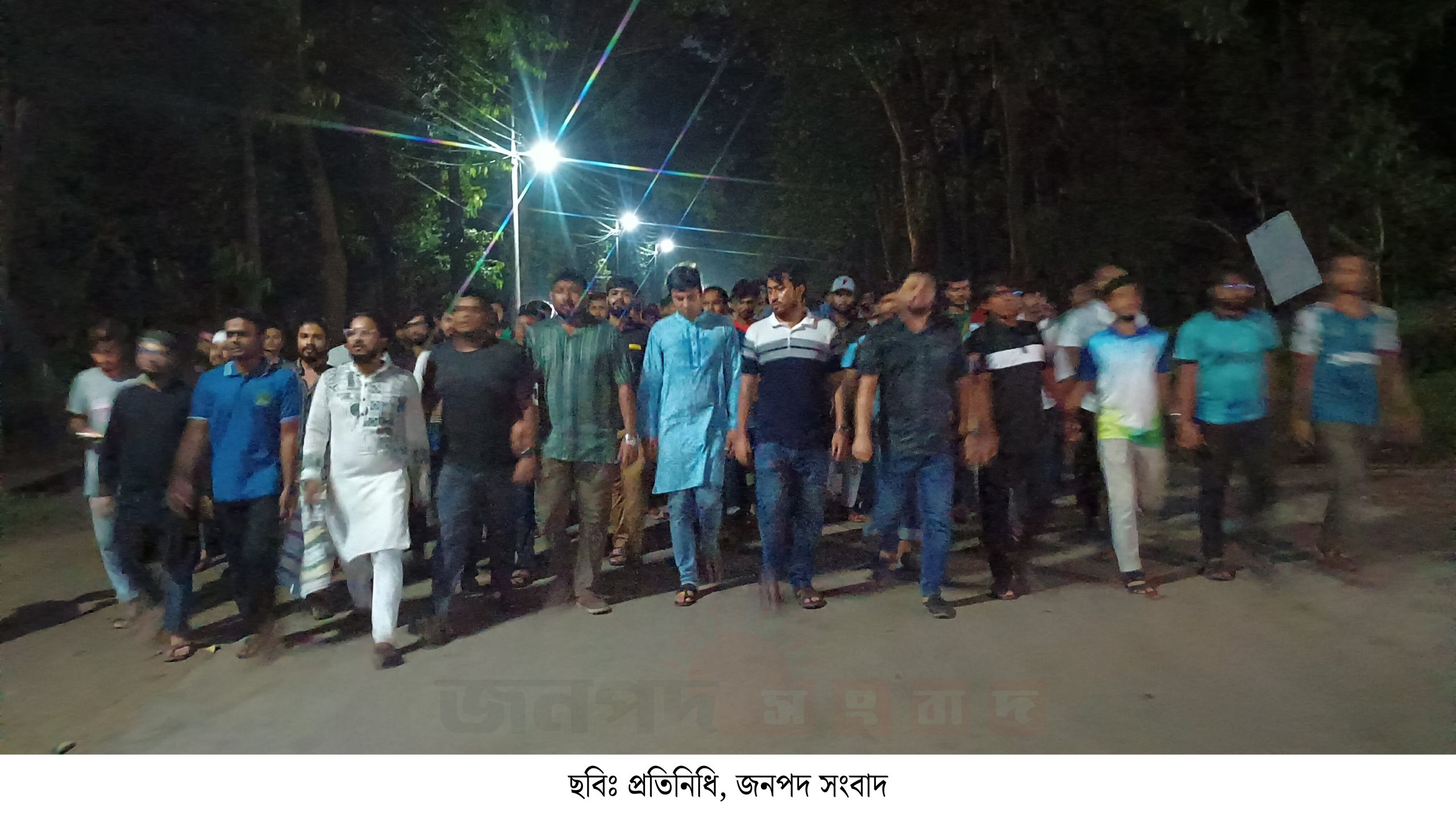 যুবদল নেতা কর্তৃক ব্যবসায়ীকে হত্যার প্রতিবাদে জাবিতে বিক্ষোভ মিছিল