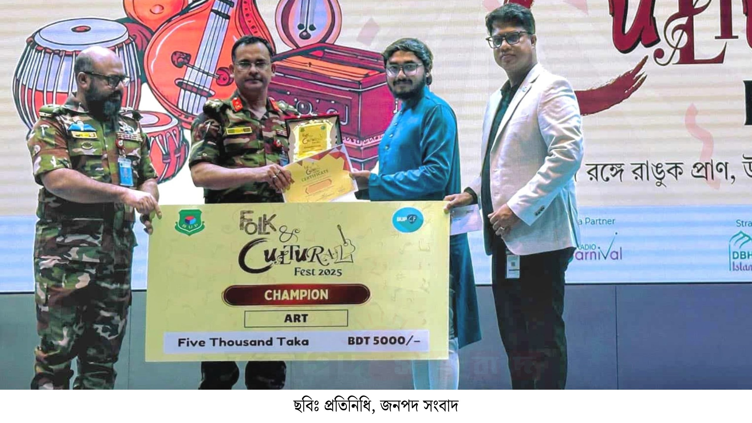 বাংলাদেশ ইউনিভার্সিটি অব প্রফেশনালসে ফুক এন্ড কালচারাল ফেস্টের পেইন্টিং কম্পিটিশনে চ্যাম্পিয়ন হয়েছে জগন্নাথ বিশ্ববিদ্যালয়। জগন্নাথ বিশ্ববিদ্যালয় সাংস্কৃতিক কেন্দ্রের হয়ে এই প্রতিযোগিতায় অংশ নিয়েছিলেন জবি শিক্ষার্থী মাহমুদুল হাসান তন্ময়।