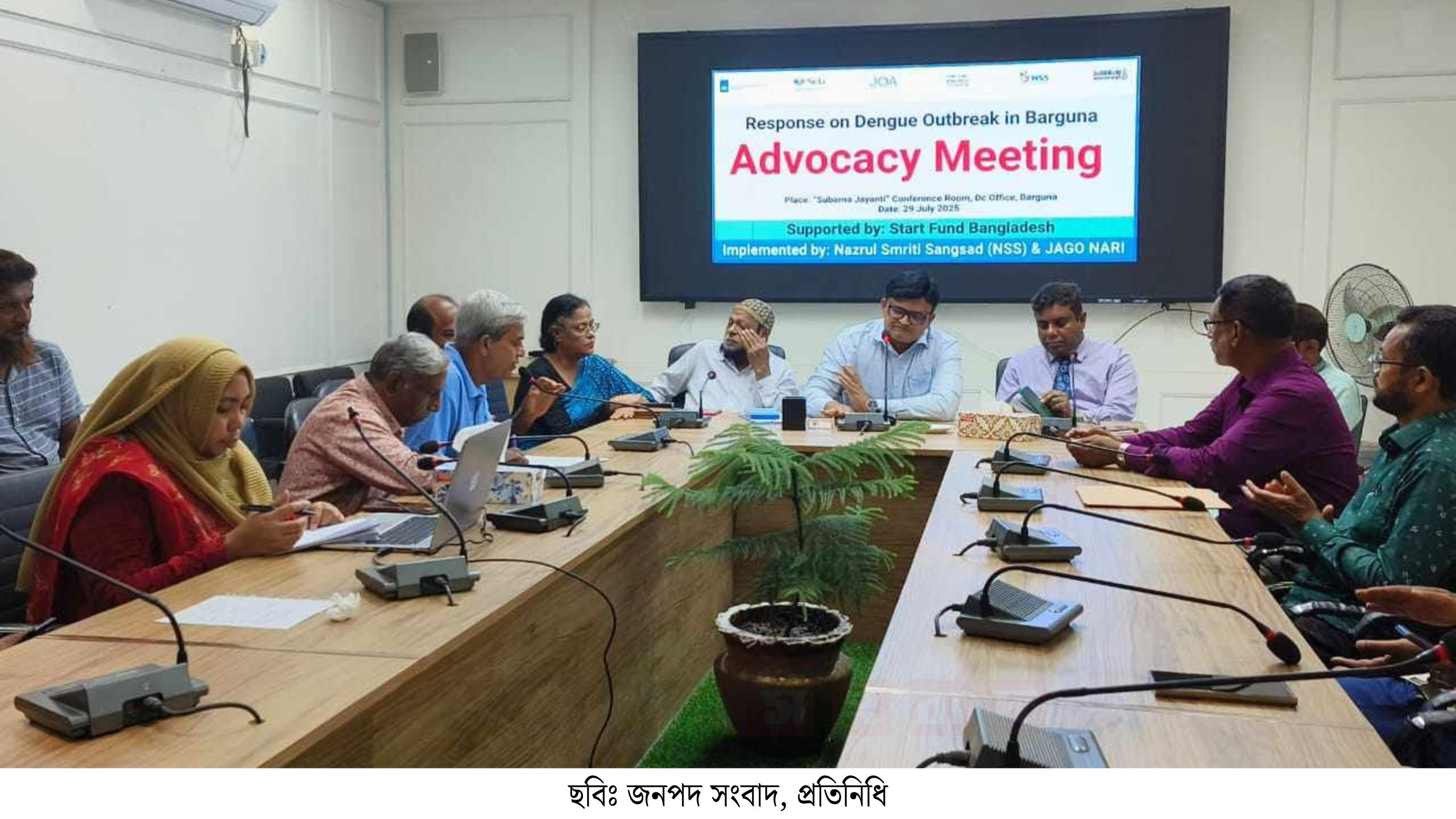 আজ সকালে বরগুনা জেলা প্রশাসকের সম্মেলন কক্ষ সূবর্ণ জয়ন্তিতে স্টার্ট ফান্ডের সহযোগিতায় এনএসএস ও জাগোনারী আয়োজিত ডেঙ্গু আউট ব্রেক প্রকল্পের