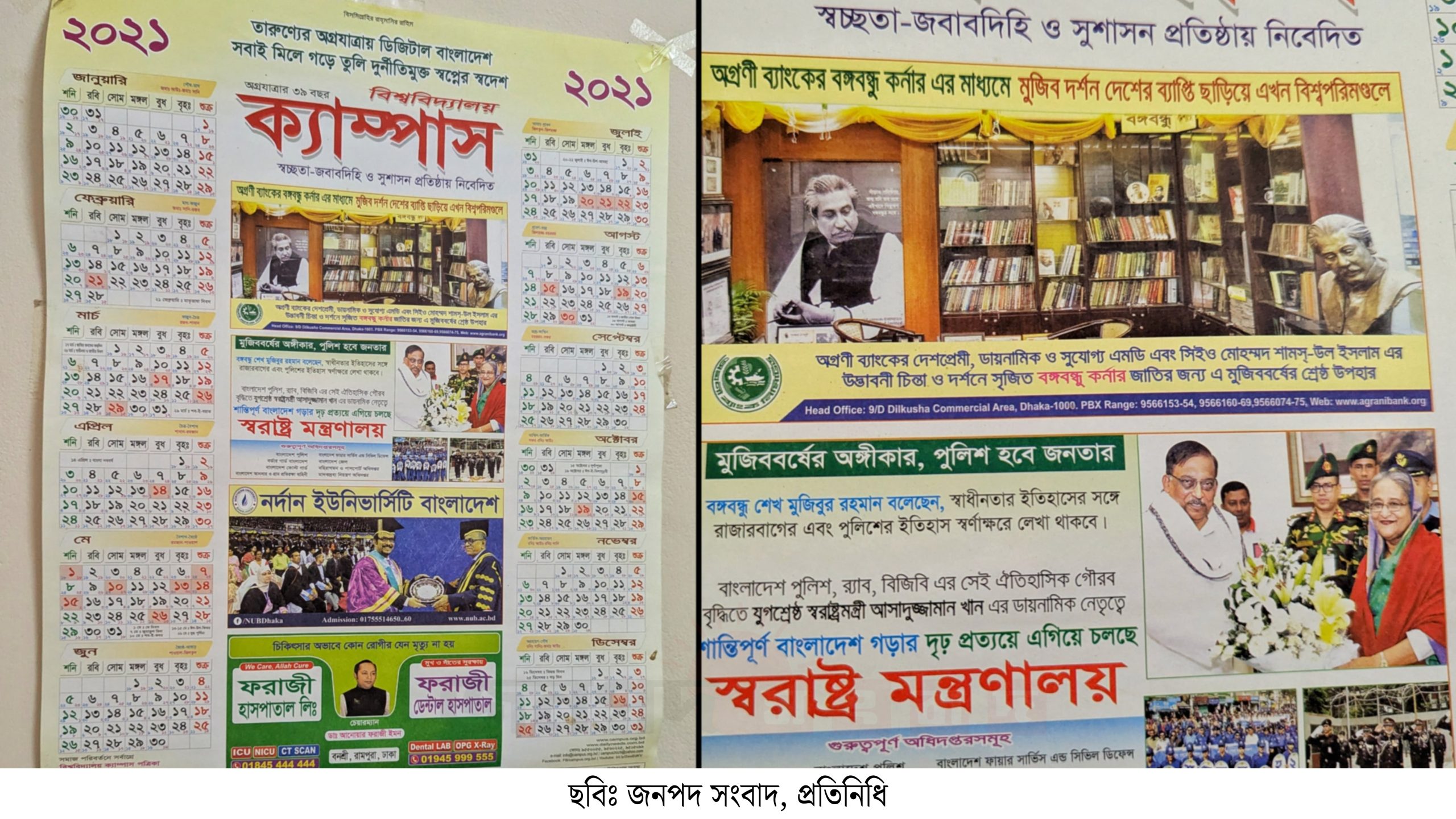 জাতীয় কবি কাজী নজরুল ইসলাম বিশ্ববিদ্যালয়ের পরিকল্পনা, উন্নয়ন ও ওয়ার্কস দপ্তরের পরিচালক মো. হাফিজুর রহমানের অফিস কক্ষে দেখা গেছে পলাতক সাবেক প্রধানমন্ত্রী শেখ হাসিনা, সাবেক স্বরাষ্ট্রমন্ত্রী আসাদুজ্জামান খান কামালের ছবি সংবলিত একটি ক্যালেন্ডার।