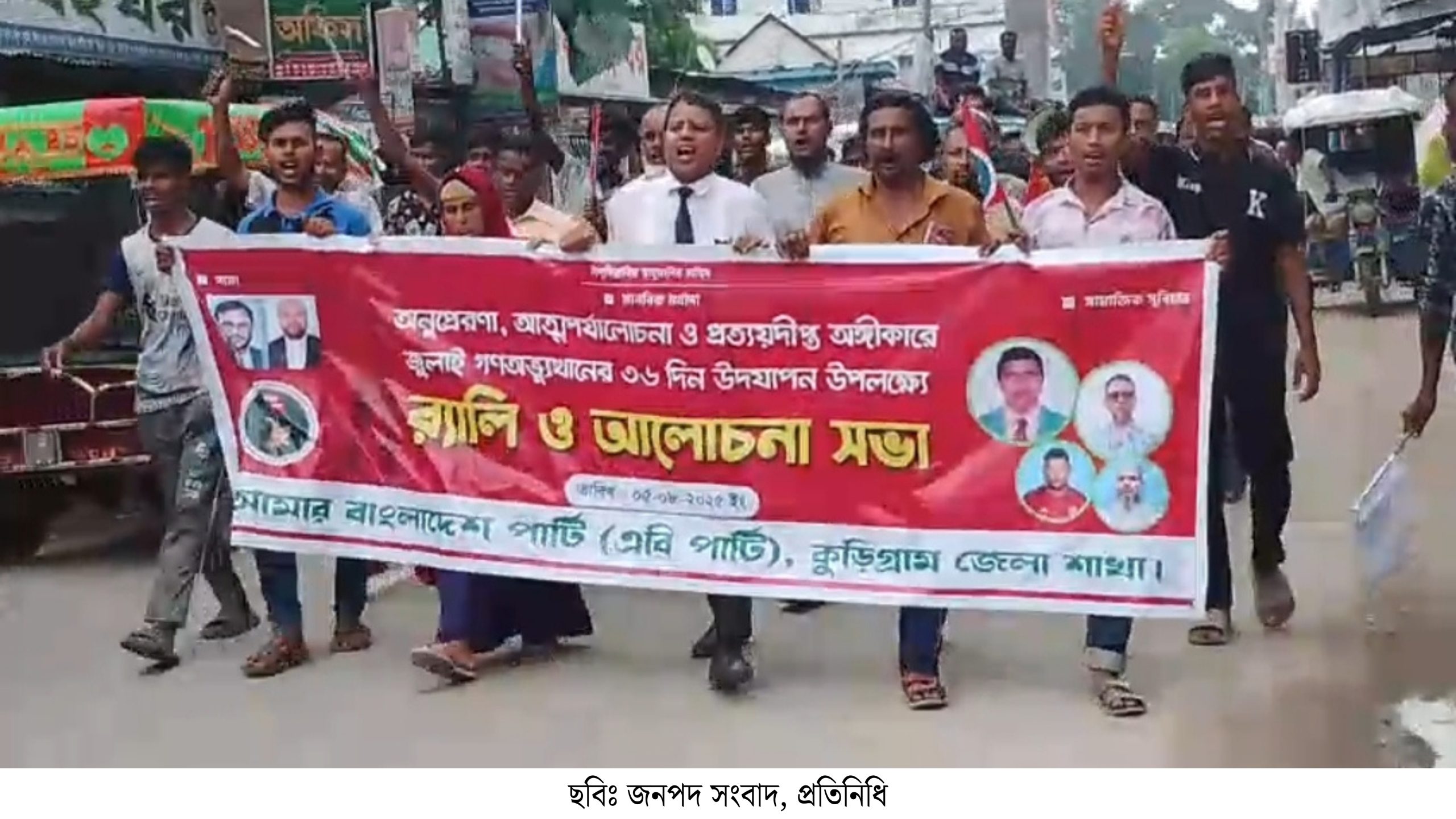 কুড়িগ্রামে জুলাই বর্ষপূর্তিতে গণঅভ্যুত্থানে নিহত শহীদদের স্মরণে এবি পার্টির র্যালি ও আলোচনা অনুষ্ঠিত হয়েছে। অনুপ্রেরণা, আত্মপর্যালোচনা, প্রত্যয়দীপ্ত অঙ্গীকারে জুলাই গণঅভ্যুত্থানের ৩৬ দিন উপলক্ষে এসব কর্মসূচি পালন করা হয়।