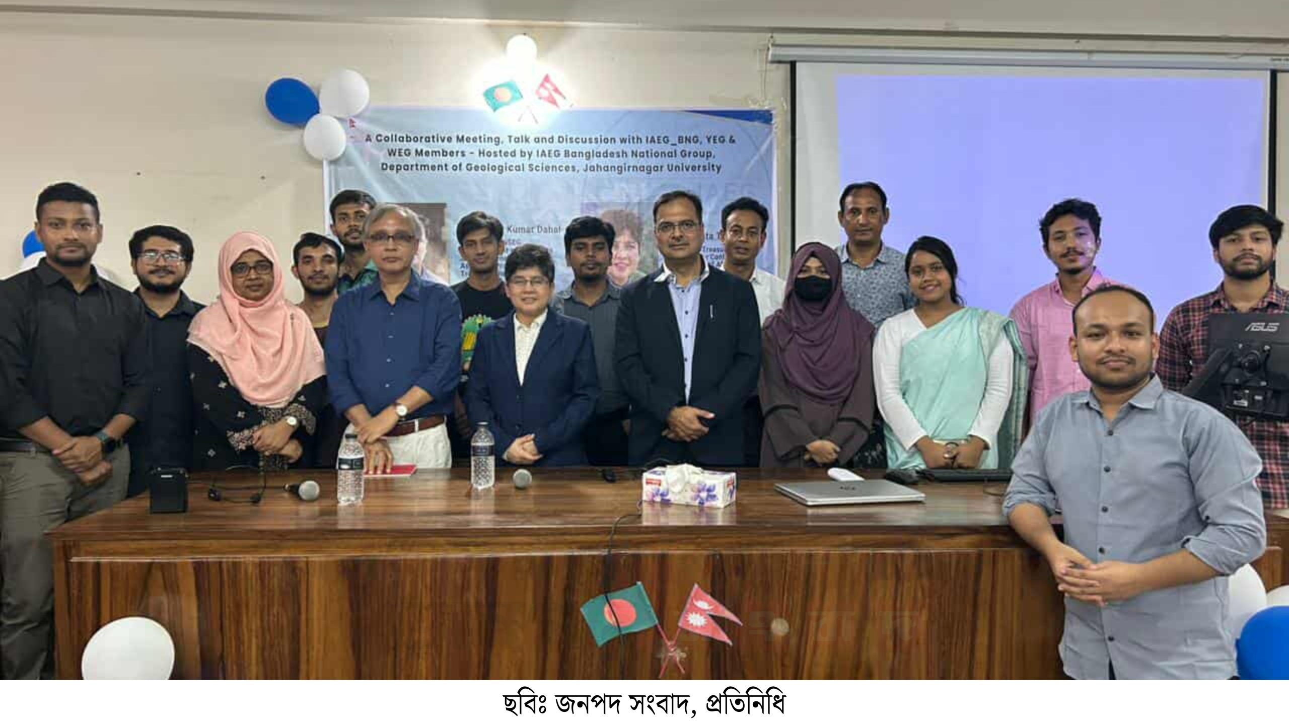 আঞ্চলিক বৈজ্ঞানিক সহযোগিতা বৃদ্ধির লক্ষ্যে আন্তর্জাতিক প্রকৌশল ভূতত্ত্ব ও পরিবেশ সংস্থা – বাংলাদেশ ন্যাশনাল গ্রুপ (IAEG_BNG) এবং জাহাঙ্গীরনগর বিশ্ববিদ্যালয় (জাবি) যৌথভাবে নেপালী ভূতাত্ত্বিকদের সঙ্গে এক উচ্চপর্যায়ের বৈজ্ঞানিক বিনিময় অনুষ্ঠান আয়োজন করেছে।
