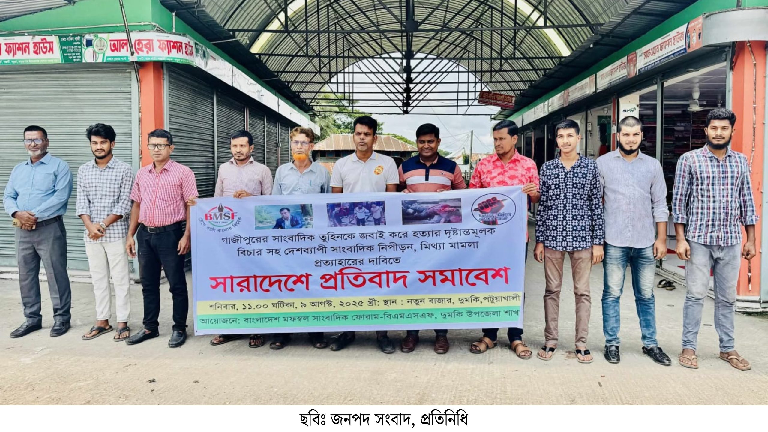 পটুয়াখালীর দুমকিতে গাজীপুরের সাংবাদিক তুহিন হত্যার প্রতিবাদে মানববন্ধন