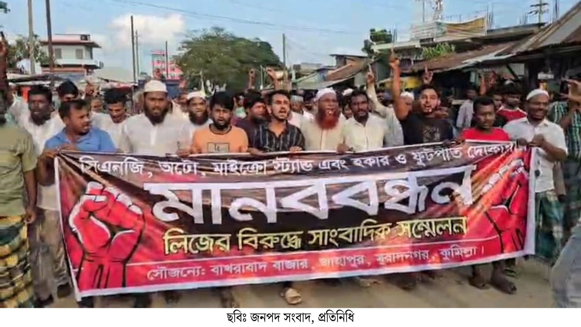 শনিবার বিকেলে মুরাদনগর-ইলিয়টগঞ্জ সড়কের বাখরাবাদ বাজারে এই মানববন্ধন ও বিক্ষোভ সমাবেশ করা হয়।