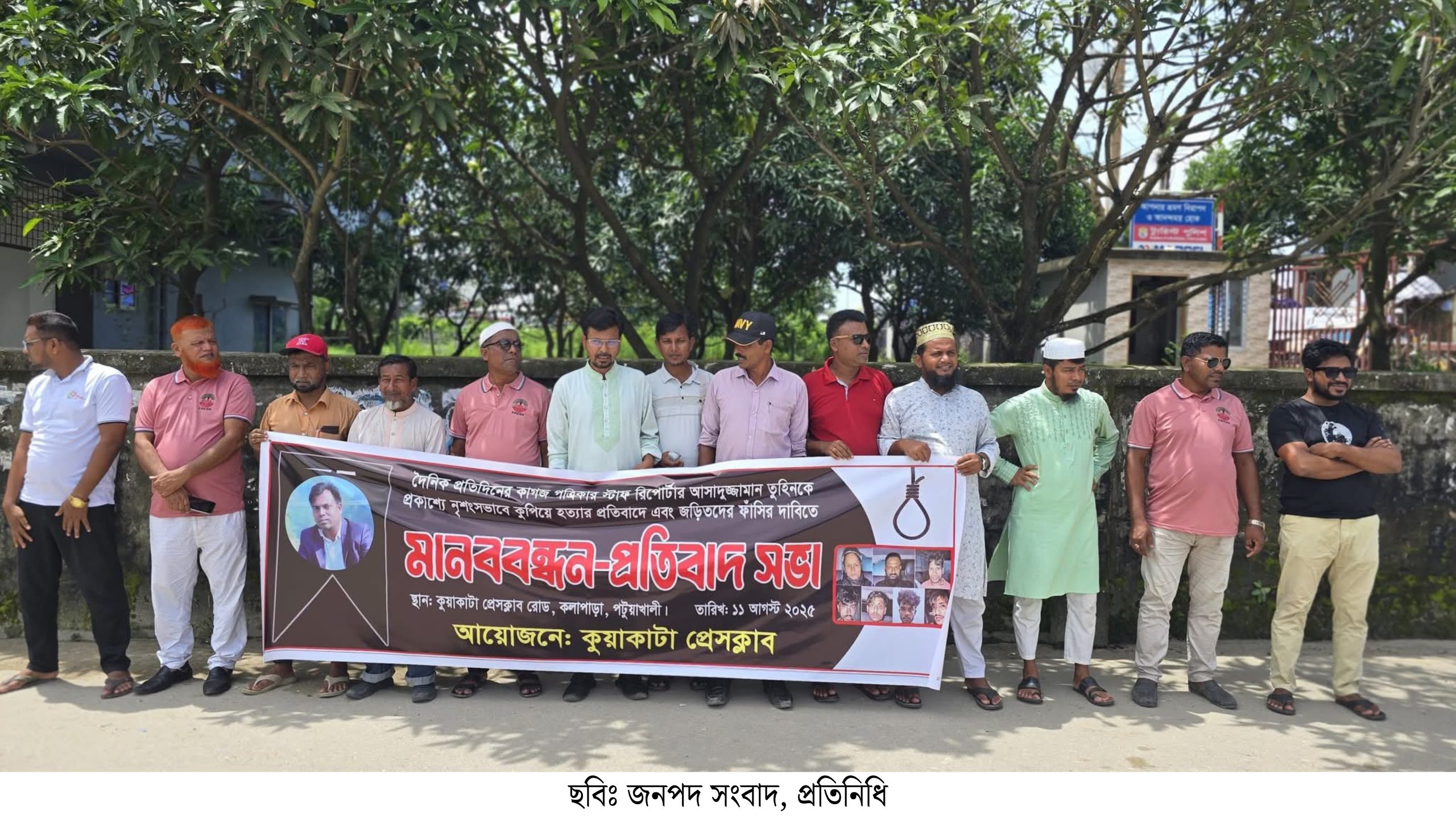 কুয়াকাটায় সাংবাদিক তুহিন হত্যাকারীদের ফাঁসির দাবিতে মানববন্ধন ও প্রতিবাদ সভা