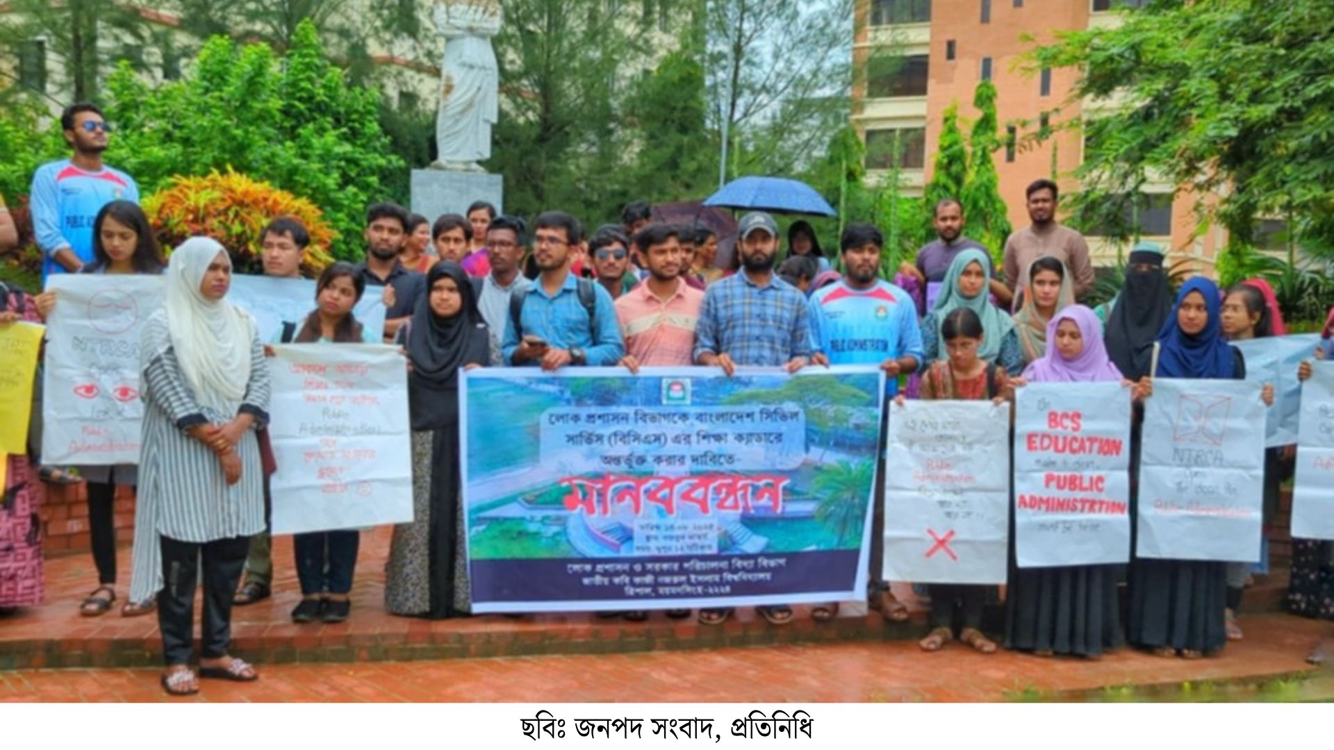 জাতীয় কবি কাজী নজরুল ইসলাম বিশ্ববিদ্যালয়ের লোক প্রশাসন ও সরকার পরিচালনা বিদ্যা বিভাগের শিক্ষার্থীরা বাংলাদেশ সিভিল সার্ভিস (বিসিএস) শিক্ষা ক্যাডারে তাদের বিভাগকে স্বতন্ত্রভাবে অন্তর্ভুক্ত করার দাবিতে মানববন্ধন করেছে।