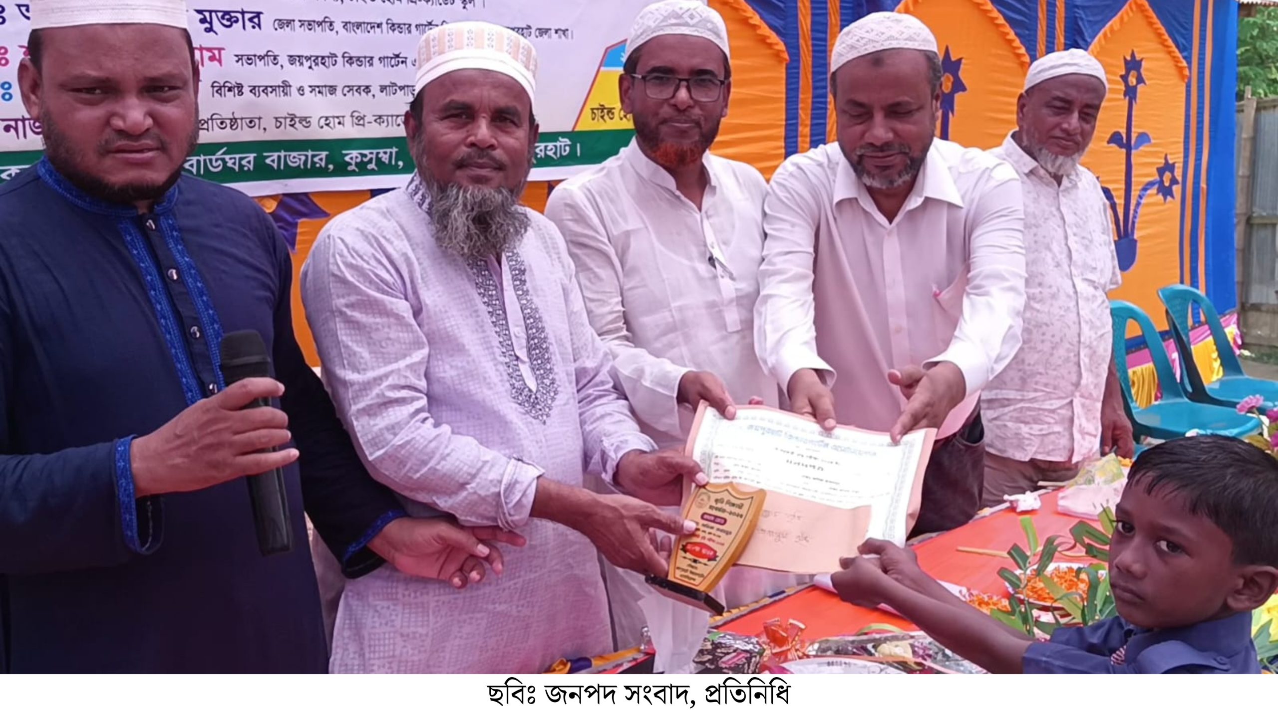 আলোচনা সভা শেষে ২০২৪ সালের জয়পুরহাট কিন্ডারগার্টেন এসোসিয়েশনের অধীনে অনুষ্ঠিত বৃত্তি পরীক্ষায় উত্তীর্ণ মেধাবী শিক্ষার্থীদের হাতে সনদপত্র, ক্রেস্ট ও নগদ অর্থ তুলে দেওয়া হয়।