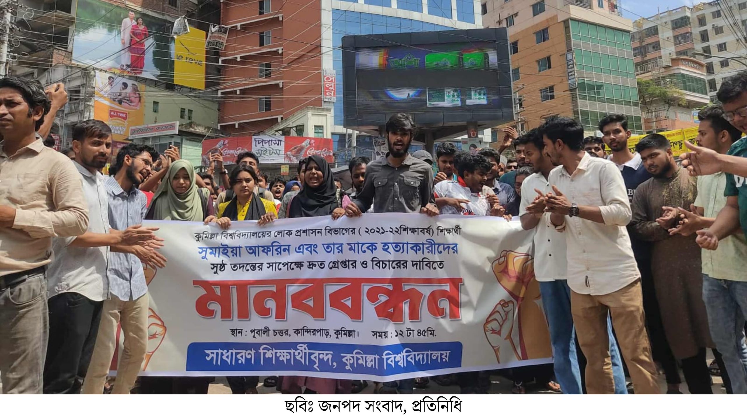 কুবি শিক্ষার্থী ও তার মায়ের ‘হত্যা’র বিচারের দাবিতে মানববন্ধন ও অবস্থান কর্মসূচি