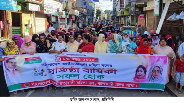বাংলাদেশ জাতীয়তাবাদী মহিলা দলের প্রতিষ্ঠাবার্ষিকী উপলক্ষে ঝালকাঠিতে বর্ণাঢ্য বিজয় র্যালি ও শোভাযাত্রা অনুষ্ঠিত হয়েছে।