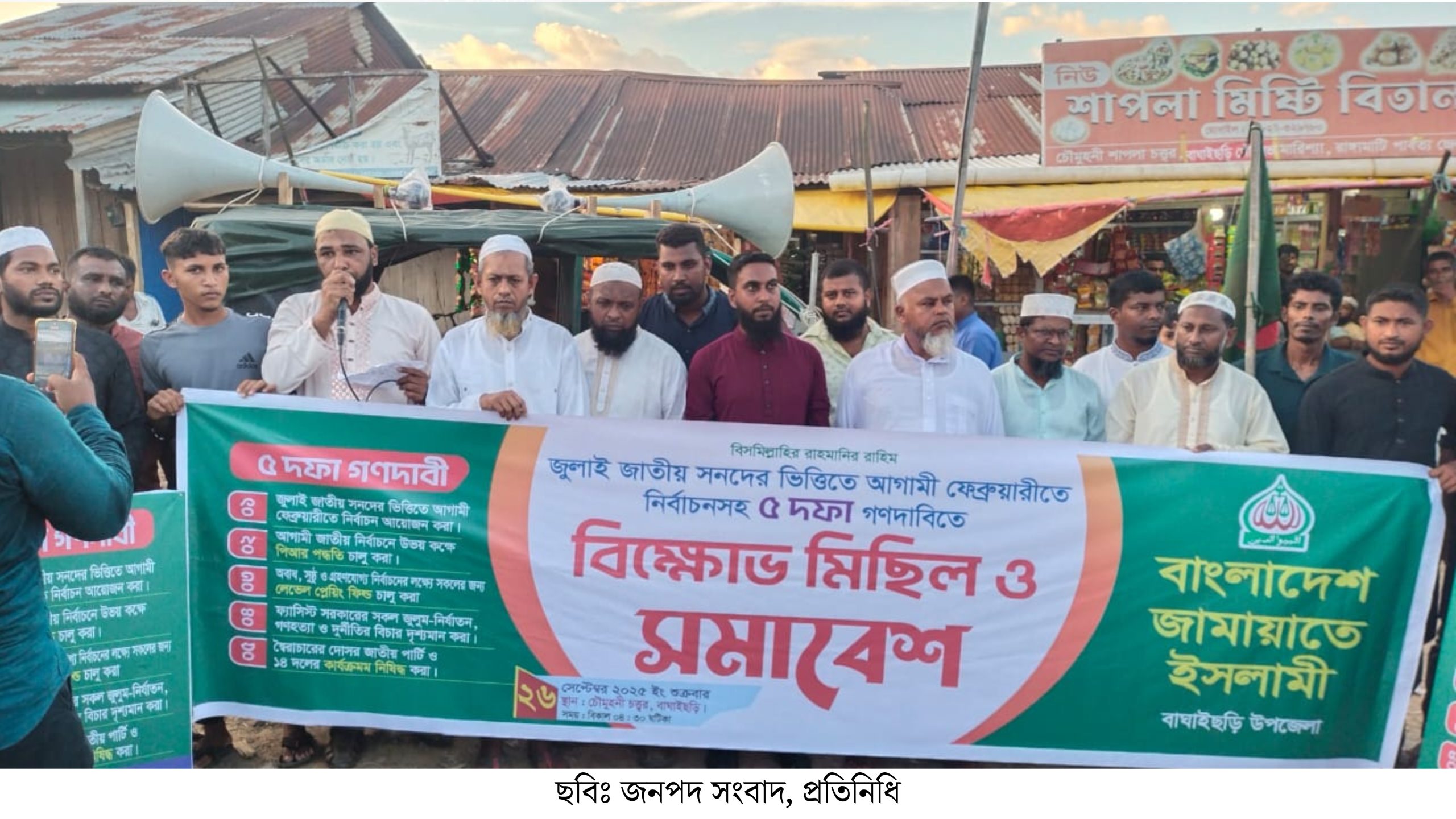 বাংলাদেশ জামায়াতে ইসলামী কেন্দ্রীয় কর্মসূচির অংশ হিসেবে বাঘাইছড়ি উপজেলা শাখার উদ্যোগে শুক্রবার (২৬ সেপ্টেম্বর) বিকাল ৫টায় বিক্ষোভ মিছিল ও সমাবেশ অনুষ্ঠিত হয়েছে। উপজেলা সদর মসজিদের সামনে থেকে শুরু হয়ে মিছিলটি উপজেলার গুরুত্বপূর্ণ সড়ক প্রদক্ষিণ শেষে চৌমুহনী শাপলা চত্বরে গিয়ে সংক্ষিপ্ত সমাবেশের মাধ্যমে শেষ হয়।