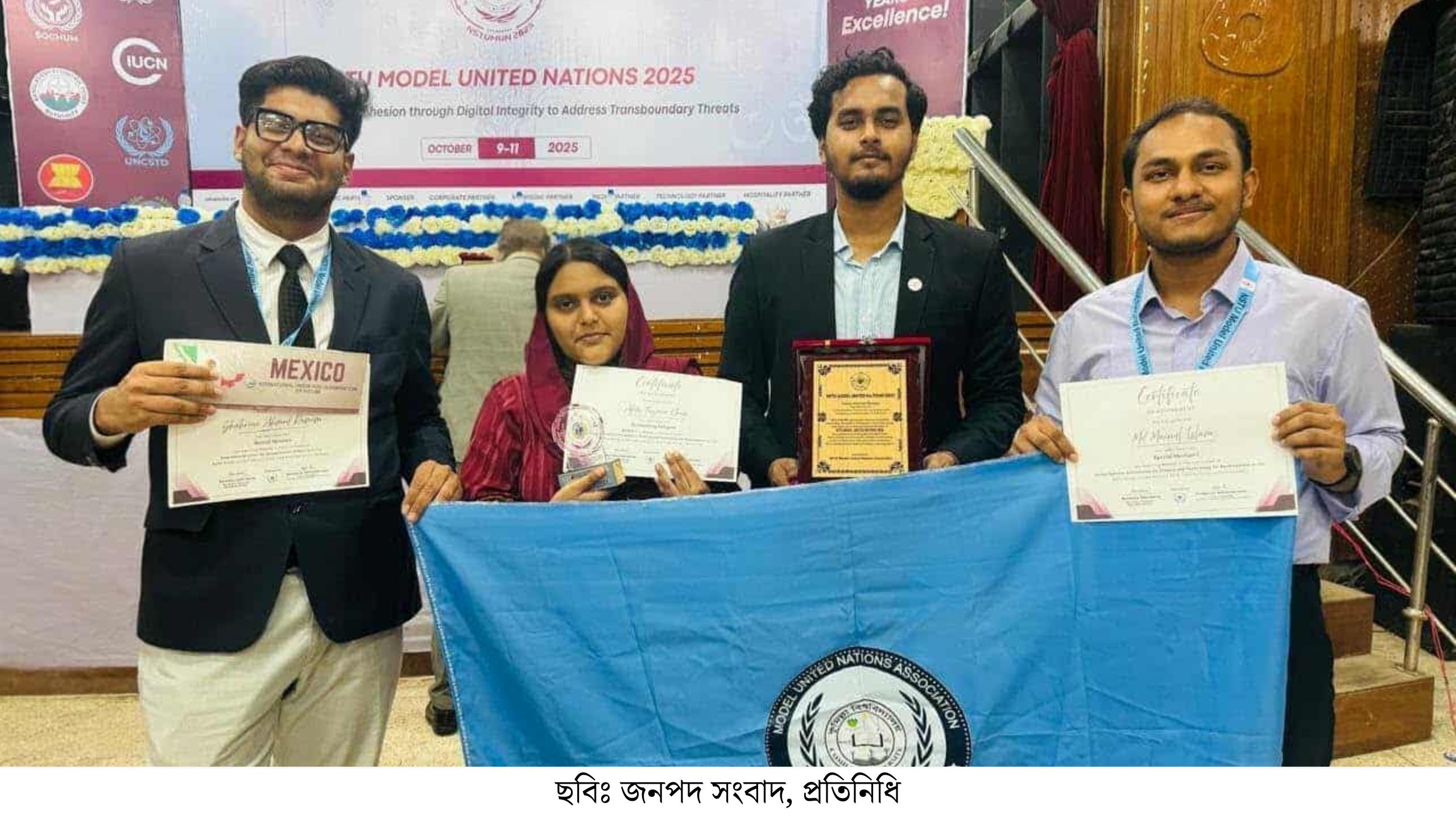 নোয়াখালী বিজ্ঞান ও প্রযুক্তি বিশ্ববিদ্যালয় (নোবিপ্রবি) মডেল ইউনাইটেড নেশনস অ্যাসোসিয়েশন কনফারেন্স ২০২৫– এ তিনটি পুরস্কার অর্জন করেছে কুমিল্লা বিশ্ববিদ্যালয়ের (কুবি) তিন শিক্ষার্থী।