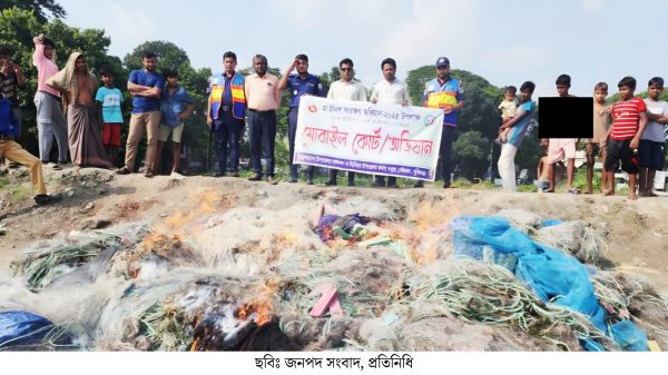 সহকারি কমিশনার ও এক্সিকিউটিভ ম্যাজিস্ট্রেট মাসুদ পারভেজের নেতৃত্বে সিনিয়র উপজেলা মৎস্য কর্মকর্তা এবং নৌ পুলিশের সমন্বয়ে এ অভিযান পরিচালিত হয়।