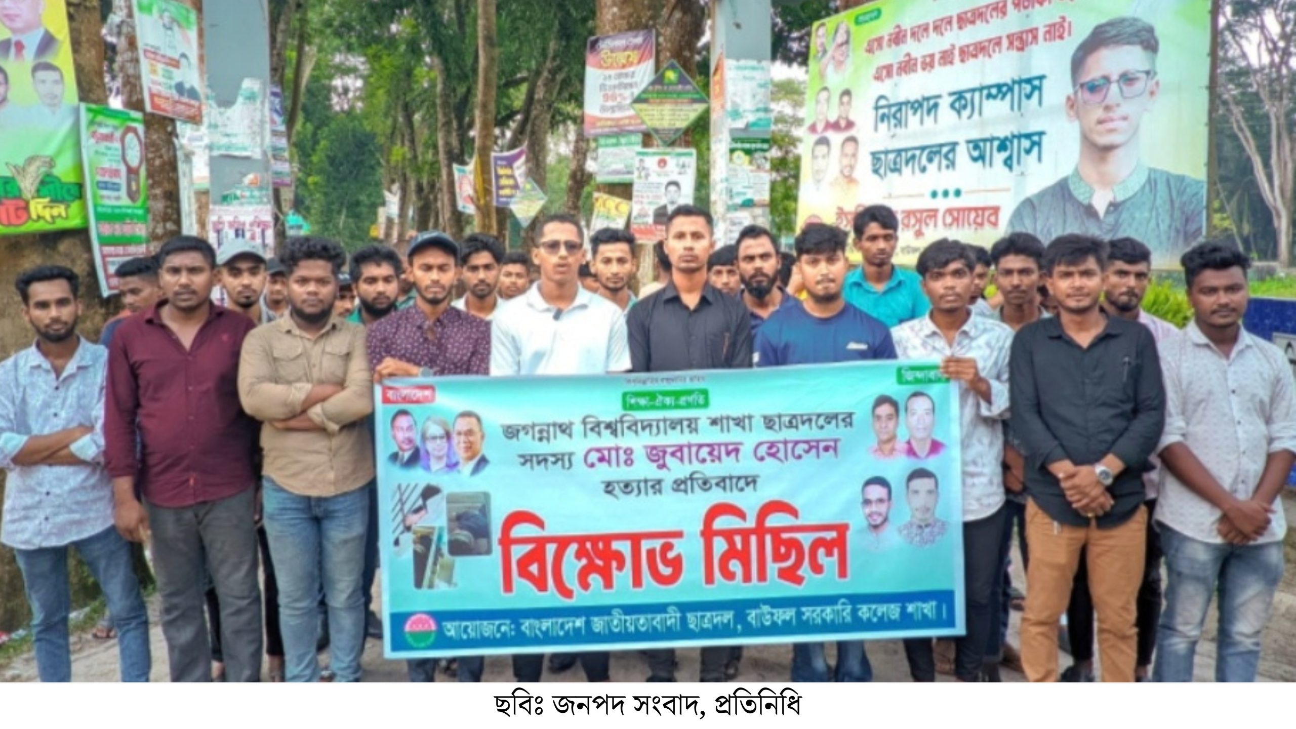 জোবায়েদ হত্যার প্রতিবাদে বাউফলে ছাত্রদলের বিক্ষোভ