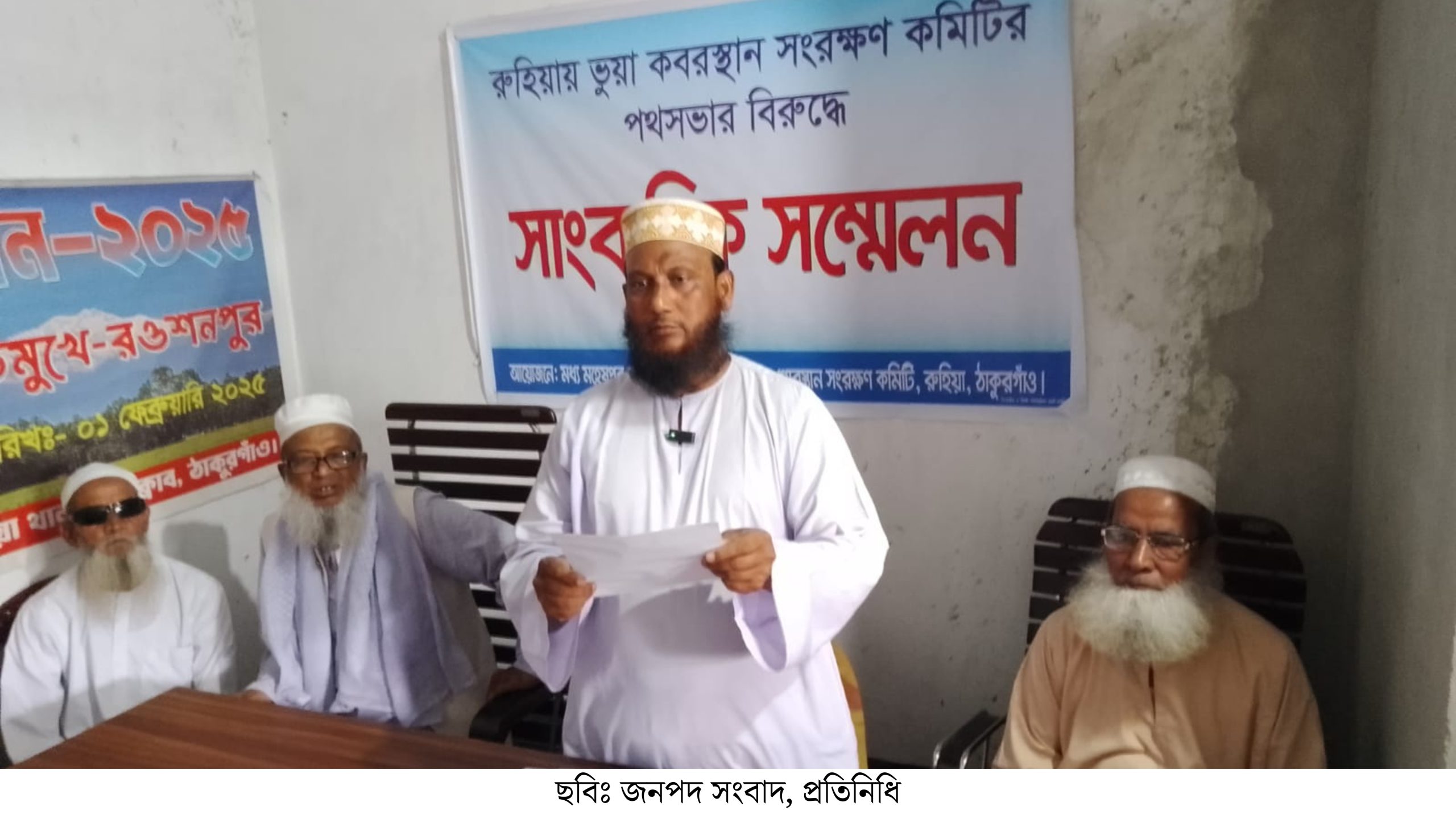 ঠাকুরগাঁও সদর উপজেলার রুহিয়া ছালেহিয়া দারুসুন্নাত ফাজিল মাদ্রাসা সংলগ্ন ঘনিমহেষপুর মৌজার খোশকবালাকৃত জমি নাডোবা কবরস্থানের নামে দখল চেষ্টা ও একটি ‘ভূয়া কবরস্থান সংরক্ষণ কমিটি’ কর্তৃক আয়োজিত পথসভার বিরুদ্ধে সংবাদ সম্মেলন করেছেন মধ্য মহেষপুর মরহুম মফিজ উদ্দিন সরকার ঘনিমহেষপুর গোরস্থান সংরক্ষন কমিটি রুহিয়ার ব্যানারে।
